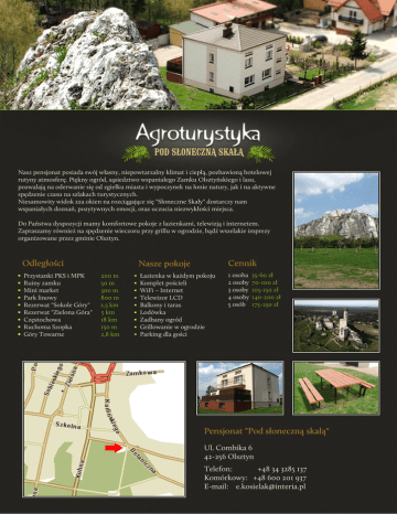 Pensjonat "Pod słoneczną skałą" Cennik Nasze pokoje Odległości