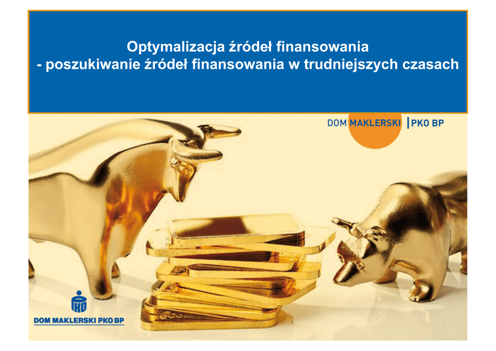 Optymalizacja źródeł finansowania - poszukiwanie źródeł finansowania w trudniejszych czasach Agenda • Podstawowe informacje o strukturze kapitału • Rodzaje źródeł finansowania • Finansowanie oparte o kapitały własne • Finansowanie oparte na długu i jego pochodnych 2 Motywy i cele pozyskiwania finansowania Motywy: • Optymalizowanie struktury finansowej firmy – kosztu kapitału; • Działania restrukturyzacyjne; • Utrzymanie płynności; Cele: • Realizacja założonej strategii • Utrzymanie dalszego dynamicznego wzrostu; • Działania konsolidacyjne – fuzje i przejęcia; • Dywersyfikacja aktywów; • Reinwestycja o wyższej stopie zwrotu; 3 Struktura kapitału • Struktura kapitału – proporcje podziału kapitału zainwestowanego na dwie części: kapitał własny i oprocentowany kapitał obcy. • Optymalna struktura kapitału – proporcje kapitału własnego i oprocentowanego kapitału obcego, przy których rynkowa wartość przedsiębiorstwa jest maksymalna. • Optymalny wskaźnik dług do kapitału w ujęciu sektorowym: 4 Źródło: „The Handbook of Financing Growth” Źródła finansowania przedsiębiorstw • Finansowanie wewnętrzne – środki finansowe przedsiębiorstwa uzyskane w drodze przekształcenia majątkowego (tj. z bieżących wpływów; z tytułu sprzedaży towarów i usług, z odpisów amortyzacyjnych, ze sprzedaży zbędnego majątku, z przyspieszenia obrotu kapitału) i gromadzenia kapitału (tj. zysk zatrzymany). • Finansowanie zewnętrzne – kapitał własny (emisja akcji, dopłaty akcjonariuszy, sprzedaż udziałów, dopłaty wspólników, wkłady, wpisowe, dotacje, aporty) i kapitał obcy (z wykorzystaniem instrumentów rynku finansowego, towarowego oraz w drodze szczególnych instrumentów finansowych). 5 Rodzaje finansowania przedsiębiorstw Finansowanie oparte o kapitały własne • Emisja akcji • Anioły Biznesu • Private Equity / Venture Capital Finansowanie oparte na długu • Fundusze pożyczkowe • Kredyty inwestycyjne • Emisja obligacji korporacyjnych • Mezzanine • Leasing 6 Zapotrzebowanie na kapitał Rodzaje finansowania przedsiębiorstw a etapy jego rozwoju Venture Capital Środki własne, rodzina i znajomi Anioły Biznesu Dług Wiek firmy Wiek firmy Rynek publiczny (emisje akcji lub/oraz obligacji) Private Equity Inwestorzy branżowi 7 Źródło: Janiszewski "Finansowanie kapitałem wysokiego ryzyka" Finansowanie oparte o kapitały własne 8 Emisja publiczna akcji Zalety • Prestiż i wiarygodność (kontrakty, kontrahenci) • Dostęp do kapitału (łatwa możliwość pozyskania kapitału w przyszłości) • Rynkowa wycena spółki • Zachowanie kontroli nad spółką • Uporządkowanie działalności przedsiębiorstwa • Poprawa struktury kapitałowej i wskaźników finansowych • Promocja i efekt marketingowy Wady • Obowiązki informacyjne (jawność działalności i procedury) • Stosowanie zasad ładu korporacyjnego • Ograniczenie wpływów (respektowanie praw akcjonariuszy mniejszościowych) • Ryzyko związane z koniunkturą na rynku kapitałowym • Konieczność przeprowadzenia procesu przygotowania spółki do IPO 9 Emisja akcji w celu sfinansowania przejęcia lub fuzji Istotne elementy: • • • • • Okazja do dokonania przejęcia kapitałowego Określenie parytetów przeprowadzenia transakcji Przeprowadzenie podwyższenia kapitału w drodze oferty prywatnej (uproszczone procedury i szybkość realizacji) Wydanie akcjonariuszom przejmowanego przedsiębiorstwa akcji nowej emisji w zamian za posiadane przez nich dotychczasowe akcje (udziały) Wprowadzenie wyemitowanych akcji do obrotu na GPW na podstawie zatwierdzonego prospektu Ten sposób realizacji rozwoju przedsiębiorstwa jest ciekawą alternatywą w dobie kryzysu ekonomicznego, gdzie pozyskanie jakiegokolwiek finansowania jest wyzwaniem samym w sobie. 10 Wady i zalety emisja akcji w celu sfinansowania przejęcia lub fuzji Zalety: • • • Szybkość realizacji transakcji oraz jej jednorazowy niewielki koszt Możliwość sfinansowania przejęć, których nie można sfinansować w inny sposób (kryzys ekonomiczny, brak możliwości pozyskania kapitału) Poprawa struktury bilansu i wskaźników ekonomicznych Wady: • • • Zmiany w strukturze właścicielskiej – rozwodnienie W przypadku spółek publicznych konieczność wynegocjowania umów lock up celem ograniczenia ryzyka niekontrolowanej podaży akcji Ryzyko niekorzystnie wynegocjowanego parytetu wymiany 11 Charakterystyka transakcji fuzji i przejęcia Słabe strony: • • • • • • nieprawidłowej decyzji o połączeniu (brak wzrostu organicznego), nietrafionego wyboru przejmowanego połączenia, nieprawidłowego procesu połączenia, przeszacowania wartości przejmowanej firmy, brak spodziewanej synergii zasobów łączących się firm, nadmiernej wielkości lub/i dywersyfikacji połączonego przedsiębiorstwa. Mocne strony - efekt synergii: • • • • • • optymalizacja sposobu zarządzania zasobami ludzkimi w przedsiębiorstwie, obniżenie kosztów dzięki efektowi skali, możliwość wdrożenia nowych technologii, w tym rozwój działów R&D, zwiększenie penetracji rynku, wzrost możliwości rozwoju danej branży gospodarczej, minimalizacja znaczenia konkurencji. 12 Anioły Biznesu Filozofia działania Aniołów Biznesu: • nieformalne kontakty towarzyskie i biznesowe, • zaangażowanie środków własnych, • anonimowość, • przedsięwzięcia o mniejszej skali (50 tys. PLN – 5 mln PLN), • inwestycje w przedsięwzięcia w fazie zalążkowej (seed) oraz w młode firmy (start-up). Korzyści dla Spółki z obecności Anioła Biznesu: możliwość pozyskania finansowania na bardzo wczesnym etapie rozwoju firmy lub realizacji pomysłu, dostęp wiedzy oraz doświadczenia; pomoc przy budowaniu kontaktów i nawiązywaniu relacji z kluczowymi partnerami w danej branży. Korzyści dla Anioła Biznesu z prowadzonych inwestycji: 