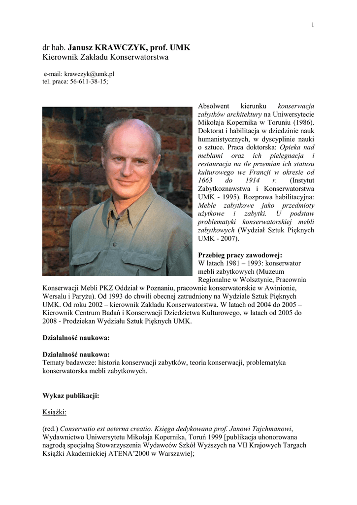 dr hab. Janusz KRAWCZYK, prof. UMK Kierownik Zakładu