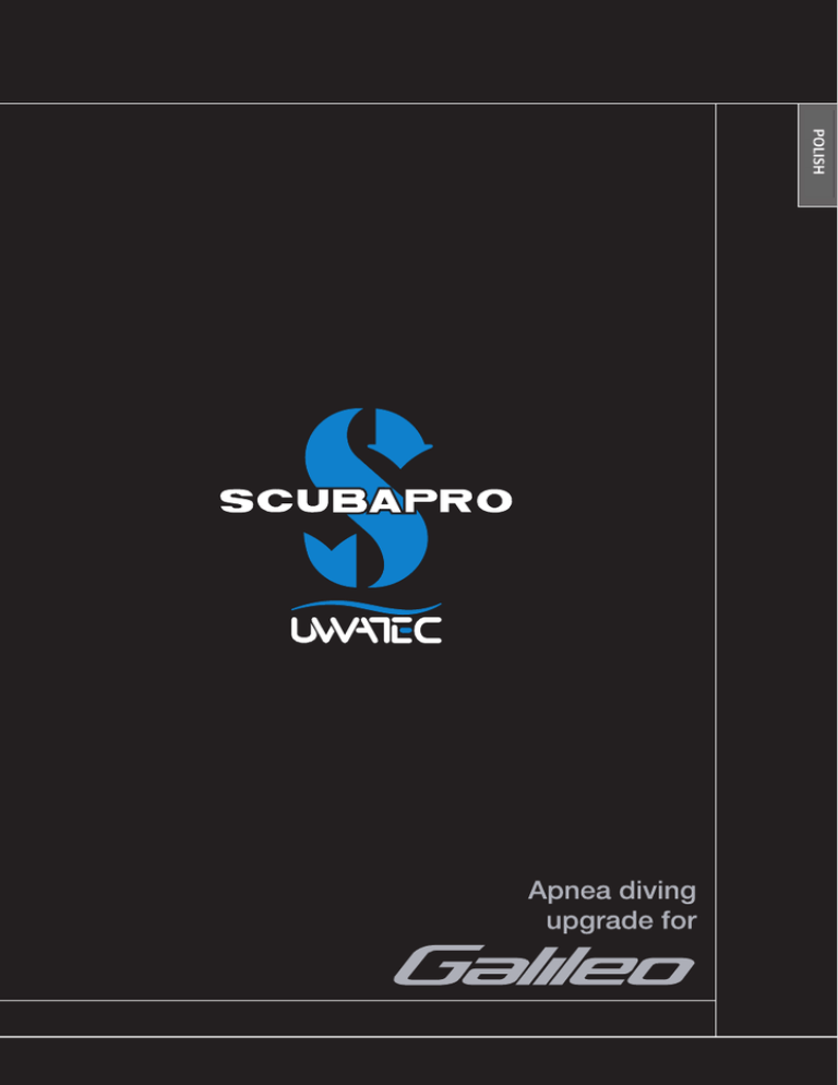 Broszura ta opisuje tryb APNEA w komputerach rodziny GALIEO: Sol, Luna i Terra. W przypadku komputer ów Luna i Terra pomiar pulsu wskazywany jest jedynie wtedy, gdy został w nich zainstalowany odpowiedni upgrade. Tryb pracy APNEA może być zainstalowany na komputerze tylko za pomocą oprogramowania SMART TRAK po ściągnięciu go ze strony internetowej. SPIS TREŚCI 1 Zmiana wyglądu wyświetlacza i menu ............................................................... 3 2 Funkcje w trybie APNEA ........................................................................................ 4 2.1 Start i Stop kontroli nurkowania APNEA ........................................................ 4 2.2 Wyświetlacz podczas nurkowania APNEA .................................................... 4 2.3 Interwał zapisów ................................................................................................. 5 2.4 Ustawienia ........................................................................................................... 5 2.4.1 Alarm maksymalna głębokość ........................................................... 5 2.4.2 Ostrzeżenie przyrost głębokości ........................................................ 5 2.4.3 Interwał czasu nurkowania.................................................................. 6 2.4.4 Przerwa na powierzchni ...................................................................... 6 2.4.5 Alarm niski puls ..................................................................................... 6 2.4.6 Alarm prędkości wynurzania.............................................................. 6 2.4.7 Gęstość wody ........................................................................................ 7 3 Logbook ...................................................................................................................... 7 4 Funkcje przycisków ................................................................................................. 8 2 1 Zmiana wyglądu wyświetlacza i menu Po zainstalowaniu na komputerze trybu APNEA na wyświetlaczu pojawiają się zmiany. Są one takie same we wszystkich modelach komputerów GALIEO: Sol, Luna, Terra: Po zainstalowaniu trybu APNEA wyświetlacz powierzchniowy wygląda jak poniżej: W menu Ustawienia Nurkowania, w miejsce tryb Głębokościomierza pojawia się Tryb Nurkowania , w którym można wybrać tryb SCUBA, GAUGE oraz APNEA. Po wybraniu ustawienia SCUBA, komputer Galileo pracuje jako komputer dekompresyjny; w trybie GAUGE Galialeo pracuje jako głębokościomierz do nurkowań technicznych. W trybie APNEA Galileo używany jest do nurkowń apnea . W MENU GŁÓWNYM pojawia się kolejny tryb pracy APNEA DIVE- po trybie USTAWIENIA NURKOWANIA. W menu tym znajdują się wszystkie ustawienia trybu APNEA, które opisano poniżej w punkcie 2.4. 3 2 Funkcje w trybie APNEA 2.1 Start i Stop kontroli nurkowania APNEA Podczas przerwy na powierzchni, przed pierwszym zanurzeniem, można sprawdzić puls załączając Galileo ręcznie. W tym celu należy przycisnąć i przytrzymać lewy przycisk, w czasie, gdy na wyświetlaczu pokazany jest wyświetlacz powierzchniowy. Należy zwrócić uwagę, aby Galileo powrócił do widoku wyświetlacza powierzchniowego po 15 minutach, jeśli nie nastąpiło zanurzenie na minimum 0,8m. UWAGA! : Maksymalna głębokość pokazywana jest tylko wtedy, gdy jest co najmniej o 3m większa niż aktualna głębokość. Czas nurkowania zostaje wyłączony w momencie osiągnięcia głębokości 0,8m i wyżej. Prędkość pokazywana jest w m/s Lewy i środkowy przycisk nie mają żadnego oznakowania, ponieważ nie przypisane są im żadne funkcje podczas tego typu nurkowania.Za pomocą prawego przycisku można włączyć oświetlenie wyświetlacza. Jeśli Galileo nie zostanie zastartowany ręcznie, załącza się automatycznie po osiągnięciu głębokości 0,8m. Po wynurzeniu Galileo pracuje nadal maksymalnie przez 15 minut. Wszystkie kolejne zanurzenia rozpoczęte przed upływem 15 min. zapisywane są w tej samej pozycji logbook’a. Jeśli przerwa na powierzchni trwa dłużej niż 15min. musi zostać zastartowana kolejna pozycja logbook’a. W tym celu należy przycisnąć i przytrzymać lewy przycisk albo zanurzyć się na głębokość poniżej 0,8m. Na głębokości mniejszej niż 0,8m na wyświetlaczu Galileo pojawiają się następujące dane: Zapis można w każdej chwili rozpocząć na powierzchni poprzez przyciśnięcie i przytrzymanie lewego przycisku. Maksymalna głębokość ostatniego nurkowania (MAX) Czas trwania poprzedniego nurkowania w minutach i sekundach (DIVE TIME) Aktualny puls, jeśli zainstalowany (HEART) Czas na powierzchni (SURF TIME) Najniższy puls podczas ostatniego nurkowania (MIN HR) Najniższa temperatura poprzedniego nurkowania (MIN TEMP) Całkowita ilość zanurzeń podczas aktualnego zapisu (DIVE NO) Całkowity czas w minutach od momentu rozpoczęcia zapisu (TOTAL) 2.2 Wyświetlacz podczas nurkowania APNEA W trybie APNEA Galileo pokazuje informacje w dwóch różnych formatach w zależności od tego, czy nurkowanie odbywa się powyżej, czy poniżej 0,8m. Poniżej 0,8m wyświetlane są następujące dane: Aktualna głębokość (DEPTH) Maksymalna głębokość (MAX) Puls, jeśli zainstalowany (HEART) Czas nurkowania w minutach i sekundach (DIVE TIME) Temperatura wody (TEMP) Prędkość zanurzania-wynurzania (SPEED) 4 Należy zwrócić uwagę, iż wszystkie ostrzeżenia są tylko akustyczne. Każde ostrzeżenie ,ma wyjątkowy ton, aby można je było zinterpretować nie spoglądając na wyświetlacz. 2.4.1 Alarm maksymalna głębokość 2.3 Interwał zapisów Z powodu odmiennej natury nurkowań APNEA (krótkie zanurzenia z możliwie krótkim pobytem na maksymalnej głębokości) zastosowano częstszy interwał odczytu głębokości i zapisu danych w czasie, gdy Galileo przestawiony jest na tryb APNEA. Poniższa tabela pokazuje porównanie do ustawień podst