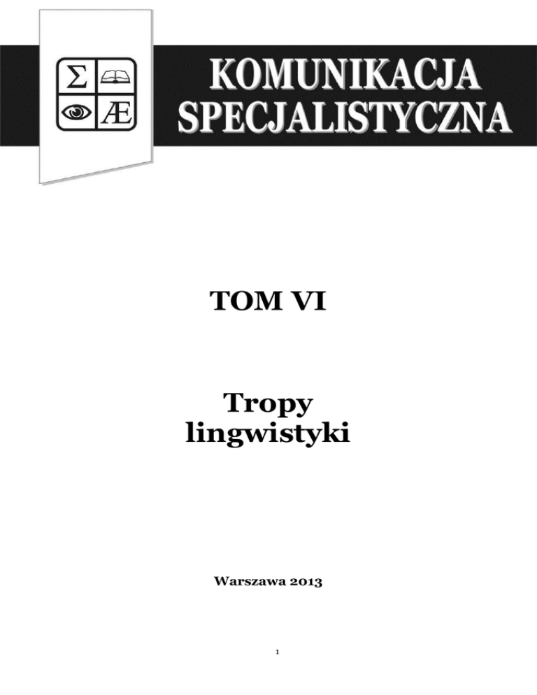 TOM VI Tropy lingwistyki - komunikacja specjalistyczna
