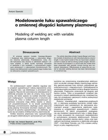 Modelowanie łuku spawalniczego o zmiennej długości kolumny