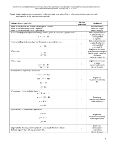 Uwaga. Jeżeli uczeń poprawnie rozwiązał zadanie metodą inną niż podana w schemacie rozwiązania otrzymuje