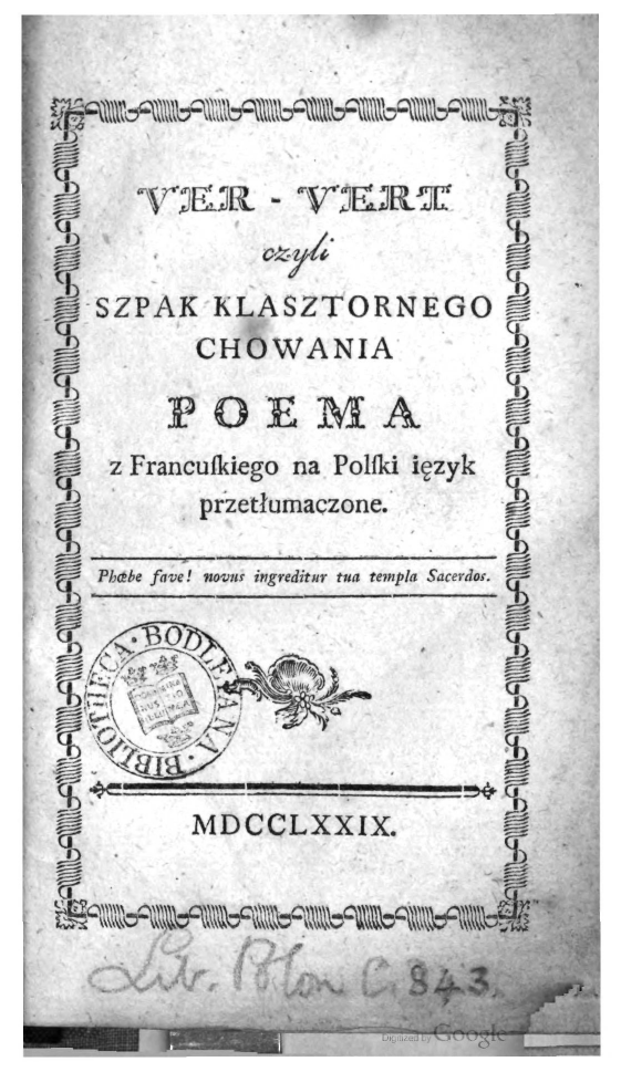 Ver-vert, czyli, szpak klasztornego chowania, poema [by