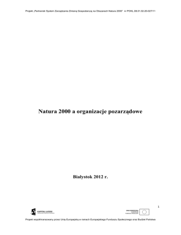 Projekt „Partnerski System Zarządzania Zmianą Gospodarczą na Obszarach Natura 2000” nr POKL.08.01.02-20-027/11 Natura 2000 a organizacje pozarządowe Białystok 2012 r. 1 Projekt współfinansowany przez Unię Europejską w ramach Europejskiego Funduszu Społecznego oraz Budżet Państwa Projekt „Partnerski System Zarządzania Zmianą Gospodarczą na Obszarach Natura 2000” nr POKL.08.01.02-20-027/11 Niewątpliwie cechą współczesnych państw demokratycznych jest istnienie trzech sektorów, a mianowicie sektora publicznego, prywatnego i tzw. trzeciego sektora. Ten pierwszy można rozumieć jako zbiór wszystkich państwowych i komunalnych osób prawnych oraz nie posiadających osobowości prawnej jednostek organizacyjnych podległych organom władzy publicznej (państwowym i samorządowym). Za sektor publiczny uważa się wszystkie te jednostki, które albo stanowią własność Skarbu Państwa, albo samorządową, albo państwowych osób prawnych. Drugi sektor skupia przedsiębiorstwa. Inaczej rzecz ujmując, jest to sfera biznesu, czyli wszelkie instytucje i organizacje, których działalność jest nastawiona na zysk. Warto również zaznaczyć, że sfera działań sektora prywatnego wiąże się z finansami prywatnymi, aczkolwiek nie jest wykluczone ubieganie się podmiotów prywatnych o środki publiczne, np. dotacje unijne 1 . Trzeci sektor tworzą organizacje pozarządowe (NGO’s- nongovernmental organisations) 2 . Jest to ogół prywatnych organizacji działających społecznie i nie dla zysku. Organizacje pozarządowe realizują niezliczone projekty i podejmują wielorakie działania na rzecz rozwoju społeczeństwa obywatelskiego. Najczęściej przybierają one formę stowarzyszeń bądź fundacji 3 . Pełnią w społeczeństwach funkcje społeczne, gospodarcze, polityczne. Zajmują się różnymi dziedzinami, jako przykładowe można wskazać sport, turystykę, rekreację, hobby, kulturę i sztukę, edukację, usługi socjalne, pomoc społeczną, ochronę zdrowia. Zaliczają się do nich także ekologia oraz ochrona środowiska. W skali Polski najbardziej znanymi organizacjami w tym zakresie są Greenpeace, Fundacja WWF, Liga Ochrony Przyrody. Organizacje pozarządowe, które zajmują się ochroną przyrody prowadzą badania naukowe, opracowują plany i projekty, realizują praktyczne przedsięwzięcia polegające na ochronie konkretnych miejsc lub gatunków, zakładają własne rezerwaty i popularyzują ochronę przyrody. Organizacje te dzięki samodzielnie zdobywanym funduszom, angażowaniu wybitnych specjalistów, doświadczeniu własnych działaczy i aktywności 1 M. Wenclik, Sfera publiczna i prywatna – interakcje, [w:] Partnerstwo międzysektorowe. Możliwości, zasady, realizacja, pod red. M. Perkowskiego, Białystok 2009, s. 12-13. 2 W ustawie z dnia 24 kwietnia 2003 r. o działalności pożytku publicznego i o wolontariacie w art. 3 ust. 2 znajduje się następująca definicja wskazująca, że: Organizacjami pozarządowymi są: 1) niebędące jednostkami sektora finansów publicznych, w rozumieniu ustawy o finansach publicznych, 2) niedziałające w celu osiągnięcia zysku– osoby prawne lub jednostki organizacyjne nieposiadające osobowości prawnej, którym odrębna ustawa przyznaje zdolność prawną, w tym fundacje i stowarzyszenia, z zastrzeżeniem ust. 4. 3 Tryb dostępu: http://www.pozytek.gov.pl/Organizacje,pozarzadowe,376.html, na dzień 14.12.2012 r. 2 Projekt współfinansowany przez Unię Europejską w ramach Europejskiego Funduszu Społecznego oraz Budżet Państwa Projekt „Partnerski System Zarządzania Zmianą Gospodarczą na Obszarach Natura 2000” nr POKL.08.01.02-20-027/11 członków mogą zrobić dla ochrony przyrody znacznie więcej (szybko i skutecznie), niż jakikolwiek organ administracji państwowej 4. Działalność organizacji pozarządowych dała się zauważyć już od początku powstawania sieci Natura 2000. To właśnie one były odpowiedzialne za tworzenie Shadow list. czyli tzw. listy cieni. Był to spis obszarów w Polsce, które zdaniem organizacji pozarządowych, zajmujących się ochroną przyrody, muszą zostać włączone do sieci NATURA 2000. Pierwsza lista powstała jako efekt niezadowolenia niezależnych środowisk ekspertów i organizacji ekologicznych – które stały na stanowisku, że wstępne wyznaczenie terenów „naturowych” w kraju wykonano z pominięciem wielu ważnych obszarów – lista została oficjalnie opublikowana w grudniu 2004 roku, a więc w kilka miesięcy po wejściu Polski do Unii Europejskiej 5 . W kwietniu 2008 roku organizacje pozarządowe przekazały nową, poszerzoną listę zawierającą wykaz 365 obszarów o powierzchni 11 296 km kw. Ponad 60 obszarom zaproponowano modyfikację granic. Wraz z najnowszą Shadow List powierzchnia siedliskowej sieci NATURA 2000 w Polsce wyniosłaby około 11, 7 proc. terytorium kraju. Przykładowe ogólnopolskie ekologiczne organizacje pozarządowe: Klub Przyrodników - jest stowarzyszeniem społecznym prowadzącym aktywną działalność na rzecz ochrony przyrody i edukacji ekologicznej społeczeństwa. Powstał w roku 1983, oficjalnie zarejestrowany został w roku 1989. Do 2001 r. nosił nazwę Lubuskiego Klubu Przyrodników, jednak na XX Zjeździe, Walne Zgromadzenie, wobec rozszerzenia działalności na cały kraj, zadecydowało o zmianie nazwy na obecnie używaną. Klub działa na terenie całej Polski ze szczególnym uwzględnieniem Polski zachodniej, siedziba mieści się w Świebodzinie. Dwa główne nurty działalności Klubu to ochrona przyrody i edukacja. Klub prowadzi inwentaryzacje i waloryzacje przyrodnicze, opracowuje dokumentacje projektowe i plany ochrony rezerwatów, parków krajobrazowych, obszarów Natura 2000 i innych obszarów oraz różnego rodzaju ekspertyzy i opinie przyrodnicze. Inne działania z zakresu ochrony przyrody, to np. wykupywanie gruntów i tworzenie "prywatnych" 4 Tryb dostępu: http://www.kk.jgora.pl/~grono