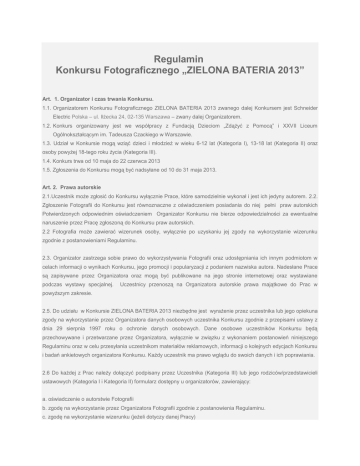 Regulamin Konkursu Fotograficznego „ZIELONA BATERIA 2013”