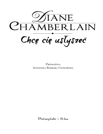 Przełożyła Agnieszka Barbara Ciepłowska Tytuł oryginału BREAKING THE SILENCE Copyright © 1999 by Diane Chamberlain Revised text copyright © 2009 by Diane Chamberlain All rights reserved Projekt serii Olga Reszelska Opracowanie graficzne okładki Agencja Interaktywna Studio Kreacji www.studio-kreacji.pl Zdjęcie na okładce © Jake Olson/Trevillion Images Redaktor prowadzący Monika Kalinowska Redakcja Anna Płaskoń-Sokołowska Korekta Katarzyna Kusojć Maciej Korbasiński Łamanie Ewa Wójcik ISBN 978-83-8069-250-3 Warszawa 2016 Wydawca Prószyński Media Sp. z o.o. 02-697 Warszawa, ul. Rzymowskiego 28 www.proszynski.pl Druk i oprawa Drukarnia POZKAL Spółka z o.o. 88–100 Inowrocław, ul. Cegielna 10–12 1 Telefon zadźwięczał w Wigilię, kilka minut po dwudziestej trzeciej. Laura jak zwykle siedziała przy komputerze. Szybko sięgnęła po słuchawkę. Wiedziała, kto dzwoni. –Chce się z panią zobaczyć – usłyszała głos pielęgniarki. – Niech pani nie zwleka. –Już jadę. Przemknęła z gabinetu przez salon z pociemniałą choinką i wbiegła na piętro. Starała się poruszać cicho jak duch, ale drzwi sypialni i tak skrzypnęły, gdy je otwierała. Ray uniósł głowę z poduszki. Zawsze miał lekki sen. –Dzwonili ze szpitala – rzuciła, ściągając koszulę nocną. Z szuflady komody wyjęła dżinsy i naciągnęła je w pośpiechu. – Jadę. Ray usiadł i zapalił lampkę nocną. –Czy on... – Nie dokończył. Sięgnął na szafkę po okulary. Sprawiał wrażenie mało przytomnego, mrugał raz po raz, jakby raziło go miękkie, stłumione światło. –Jeszcze żyje. Ale chyba to już końcówka. – Słyszała brak emocji w swoim głosie. Natura naukowca wzięła górę nad uczuciami. –Jadę z tobą. – Ray odrzucił kołdrę. – Obudzę Emmę... 5 –Nie, nie. – Wciągnęła sweter przez głowę, nachyliła się nad łóżkiem i pocałowała męża w czoło. – Zostańcie. Nie ma sensu jej ciągać. Poza tym muszę się pospieszyć. –No dobrze. – Ray przeciągnął ręką po przerzedzonych ciemnych włosach. – Gdybyś zmieniła zdanie, zadzwoń. W pasiastej piżamie, otulony pościelą, wyglądał jak chłopczyk z obrazka, tyle że był większy. Laurze zrobiło się ciepło na sercu. –Dobrze. W razie czego zadzwonię. Na zewnątrz było mroźno i bezwietrznie. Dość szybko wydostała się z dzielnicy szeregowych domków, zostawiając za sobą drzewa ustrojone w kolorowe lampki, ale już na głównej ulicy Leesburga stawała na każdych światłach, choć wokół było prawie całkiem pusto. Ojciec Laury nie życzył sobie heroicznej walki o utrzymanie go przy życiu. Laura w teorii zgadzała się z jego decyzją, jednak podświadomie czekała na cud. Nie była gotowa na utratę rodzica. Carl Brandon jako jedyny był przy niej przez całe jej życie i na niego jednego zawsze mogła liczyć. Oczywiście układ między nimi nie był idealny, ale kto widział idealny układ między ojcem i córką? Przed kilkoma miesiącami Carl skończył osiemdziesiąt lat. Chwilę wcześniej wykryto u niego nawrót nowotworu. Laura wyprawiła ojcu przyjęcie urodzinowe w Muzeum Technologii Lotnictwa i Lotów Kosmicznych, prowadzonym pod egidą Instytutu Smithsona – muzeum specjalnie dla Carla otwarto po godzinach zwiedzania. Zorganizowała nawet pokaz w obserwatorium. Wiedziała, że to jego ostatnie urodziny, a nic nie cieszyło go bardziej 6 niż obserwowanie mrowia gwiazd. Niewiele brakowało, a porzuciłby swoich gości. Na szpitalnym parkingu dla odwiedzających stało zaledwie kilka samochodów, więc zostawiła wóz blisko wejścia. Hol był dziwnie pusty, światła przygaszone. Idąc do sali, próbowała się przygotować na to, co ją czeka. Ojciec będzie spokojny. Nie bał się śmierci, co podnosiło ją na duchu. Jako astronom nie przeceniał znaczenia własnej egzystencji. Będzie trzymała go za rękę, gdy pożegna się z tym światem. Będzie dzielna. Potem wróci do domu, a Ray ją pocieszy. Rano powie swojej pięcioletniej córce o śmierci dziadziusia. Rozmawiała już z Emmą o jego chorobie, przypominając zgon świnki morskiej sprzed roku. Mała zasypywała ją pytaniami, lecz najwyraźniej nie mogła pojąć znaczenia zwrotu „na zawsze”, a Laura, choć zwykle kpiła z wiary w życie pozagrobowe, ku własnemu zaskoczeniu opowiedziała córce o duszach idących do nieba. Chciała ją pocieszyć. W jakimś sensie chciała też pocieszyć siebie. Ledwo przekroczyła próg sali, zorientowała się, że ojciec wcale nie jest spokojny. Był w znacznie gorszym stanie niż po południu. Miał krótki, urywany oddech, poszarzałą skórę i wyraźnie coś go gnębiło. Na jego przystojnej niegdyś twarzy malowała się udręka. Laura usiadła na brzegu łóżka. –Już jestem. Czuła, że nie chciał umierać w samotności. Powinna zignorować te czerwone światła po drodze, dotarłaby tu wcześniej. Wziął w ręce obie jej dłonie. Ciągle jednak wydawał się niespokojny. 7 –Trzeba... ci było... powiedzieć wcześniej... – wyszeptał z trudem. Pochyliła się nad nim i przekrzywiła głowę. Przez szpitalne okno widziała gwiazdozbiór Barana. –Ciii, tato, spokojnie. Przygładziła niesforną kępkę jego siwych włosów na skroni. –Jest kobieta... – wyrzucił z siebie między urywanymi oddechami. – Musisz... Wychudzona twarz stężała mu z wysiłku. –Co muszę? – spytała cicho. –Znaleźć... Znaleźć ją. Laura odsunęła się i przyjrzała ojcu uważnie. Urojenia? –Dobrze. Znajdę. Już nic nie mów, proszę. – Puścił jej dłonie i kanciastym gestem sięgnął do szpitalnej szafki. Na blacie Laura dostrzegła skrawek papieru. Podała go ojcu. Na kartce prawie nieczytelnym pismem zanotowano imię i nazwisko. Jej serce ścisnęło się na widok koślawych liter. – Sarah Tolley – przeczytała. – Kto to jest? –Ważna osoba... Przyjaciółka... – Carl z wysiłkiem przełknął ślinę; w