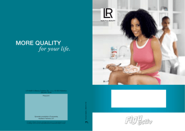 Figuactiv Body Mission More Quality for your life. LR Health & Beauty Systems Sp. z o.o. 40-950 Katowice (32) 351 12 50 Sprzedaż produktów LR prowadzą niezależni Partnerzy LR. LR Health & Beauty Systems zastrzega sobie prawo do wprowadzania zmian w katalogu oraz nie ponosi odpowiedzialności za ewentualne błędy w druku. 24 Kod produktu: 93974-018 Wręczył/a: PL Figuactiv Body Mission Spis treści Rozdział 1: Jak efektywnie schudnąć? Wielu z nas pomimo wypróbowywania kolejnych diet nie udaje się osiągnąć optymalnej wagi. Dzieje się tak, ponieważ często są to zbyt monotonne, radykalne lub skomplikowane diety. Czasami Dziecinnie prosta dieta Nareszcie proste odchudzanie Pierwszy krok na drodze do optymalnej wagi 4 Prosta zasada Figuactiv Body Mission 5 Jak to działa w praktyce? Dzień z produktami Figuactiv 6 już po kilku dniach przychodzi rezygnacja, apatia i zmęczenie. Na domiar złego po powrocie do dawnego sposobu odżywiania się Rozdział 2: szybciej przybieramy na wadze. Jednak wcale nie musi tak być. To działa Poznaj program dietetyczny, który łączy w sobie wszystkie Czynniki decydujące o powodzeniu diety Figuactiv Body Mission istotne czynniki decydujące o powodzeniu procesu odchudzania. Co decyduje o powodzeniu diety? 9 Motywacja do kontynuowania diety 10 Wiedza naukowa dla długotrwałego sukcesu 11 Figuactiv Body Mission Twój przepis na sukces Rozdział 3: Niewiarygodnie prosta dieta! Pewna jakość Działanie potwierdzone w badaniach naukowych! Zdrowie na pierwszym miejscu Gwarantowana najwyższa jakość! Nasza obietnica jakości 16 Różnorodna oferta produktów Figuactiv18 Co zawiera zestaw Figuactiv Body Mission?21 Rozpocznij swój indywidualny program Body Mission i krok po kroku przybliżaj się do swojej optymalnej wagi. Życzymy powodzenia! Rozdział 4: Podsumowanie Figuactiv Body Mission w skrócie 2 23 3 Dziecinnie prosta dieta Figuactiv Body Mission Dziecinnie prosta dieta Pierwszy krok na drodze do optymalnej wagi Pierwszy krok jest najważniejszy. Wyznacz sobie realistyczny cel i rozpocznij dietę Body Mission! Zobaczysz, że kolejne kroki będą Prosta zasada Figuactiv Body Mission bardzo proste. Wyznacz sobie cel Twoją motywacją jest waga docelowa. Wyznacz sobie mniejsze, realistyczne cele, które chcesz osiągnąć. Nie planuj zbyt wiele za jednym razem! Nareszcie proste odchudzanie Dwa z trzech posiłków w ciągu dnia zastępuj porcją Figuactiv! + Rozpocznij Body Mission Zastępuj niektóre posiłki w ciągu dnia porcją Figuactiv. Wypróbuj różnorodne produkty z tej serii. Wieczorem możesz delektować się ciepłą zupą, a w podróży sięgnąć po baton. rano + w południe wieczorem Właściwie to wszystko, co musisz wiedzieć, żeby dieta się udała! Ciesz się sukcesami Pierwsze efekty diety Figuactiv Body Mission widać już po krótkim czasie. Należy jednak pamiętać, że każdy z nas jest inny, dlatego nie zniechęcaj się, widząc większe rezultaty u innych osób. 4 5 Dziecinnie prosta dieta Figuactiv Body Mission Jak to działa w praktyce? Dzień z produktami Figuactiv 6 Figuactiv Body Mission nie jest jak typowa dieta. Mogę się odchudzać i jeść wspólne posiłki z rodziną. Rano śpieszę się do pracy. Przed wyjściem wypijam shake‘a i mogę w świetnej formie rozpocząć kolejny dzień. rano: Czas do przerwy obiadowej zwykle bardzo się dłuży. W międzyczasie wypijam filiżankę herbaty ziołowej Figuactiv. Między posiłkami: W czasie przerwy obiadowej lubię zjeść coś ciepłego. Zupę warzywną Figuactiv urozmaicam dodatkową porcją warzyw. Taki posiłek zapobiega spadkowi energii po południu. w południe: Do wieczora nie jest już tak daleko. Jeśli mam ochotę na małą przekąskę, sięgam po Figuactiv Lineé. Po południu: Wieczór to czas dla mojej rodziny. Przyrządzamy coś pysznego do jedzenia i rozmawiamy przy stole o tym, jak nam minął dzień. Sięgam też wtedy po dodatkową porcję białka – napój proteinowy Figuactiv. wieczorem: Przed wyjściem do pracy można szybko przyrządzić pyszny, kremowy shake! orzeźwiająca herbata ziołowa Figuactiv Smaczna, pożywna zupa to doskonały, ciepły posiłek w przerwie obiadowej. Można ją wzbogacić warzywami. Linée – idealny między posiłkami, kiedy pojawia się apetyt na przekąskę. Wspólna kolacja z rodziną, a do tego kremowy napój proteinowy. 7 To działa Figuactiv Body Mission To działa! Kiedy dieta jest skuteczna? Długofalowe odchudzanie jest możliwe tylko wtedy, jeśli dieta jest urozmaicona, przyjemna i uwzględnia wiedzę na temat funkcjonowania organizmu. Właśnie taki jest program Figuactiv Body Mission, który łączy dwa czynniki sukcesu: 1. 2. 8 Motywacja Dieta jest skuteczna tylko wtedy, jeśli Ci smakuje. W przeciwnym razie trudno jest wytrwać aż do momentu osiągnięcia pożądanych rezultatów. Nauka Procesy wewnątrz organizmu są bardzo złożone. Musimy je uwzględniać, jeśli podczas diety chcemy rzeczywiście spalać tkankę tłuszczową. Program Figuactiv Body Mission bazuje na wynikach badań naukowych – skorzystaj z wiedzy ekspertów! 9 To działa Figuactiv Body Mission 1. Motywacja Im przyjemniejsza jest dieta, tym większa motywacja do jej kontynuowania. Dlatego ważny jest dobry smak i duży wybór. Program Figuactiv Body Mission został opracowany z myślą o smacznej i zróżnicowanej diecie. Różnorodność: zupy, shaki, batony Pyszne smaki: słodkie, pikantne, kremowe i chrupiąceprodukty Urozmaicenie: np. shake truskawkowo-bananowy, zupa pomidorowa, płatki z żurawiną, batony nugatowe i nie tylko! 2. Nauka Nie musisz analizować skomplikowanych koncepcji żywienia. Eksperci LR zrobili to już za Ciebie, opracowując program Figuactiv Body Mission. Skorzystaj z wiedzy specjalistów i rozpocznij dietę opartą na trzech filarach: 1. Zwiększenie spalania tłuszczu* Rachunek jest prosty: dostarczamy do organizmu mniej kalorii (energii) i spalamy nadmiar tkanki tłuszczowej. Z Figuac