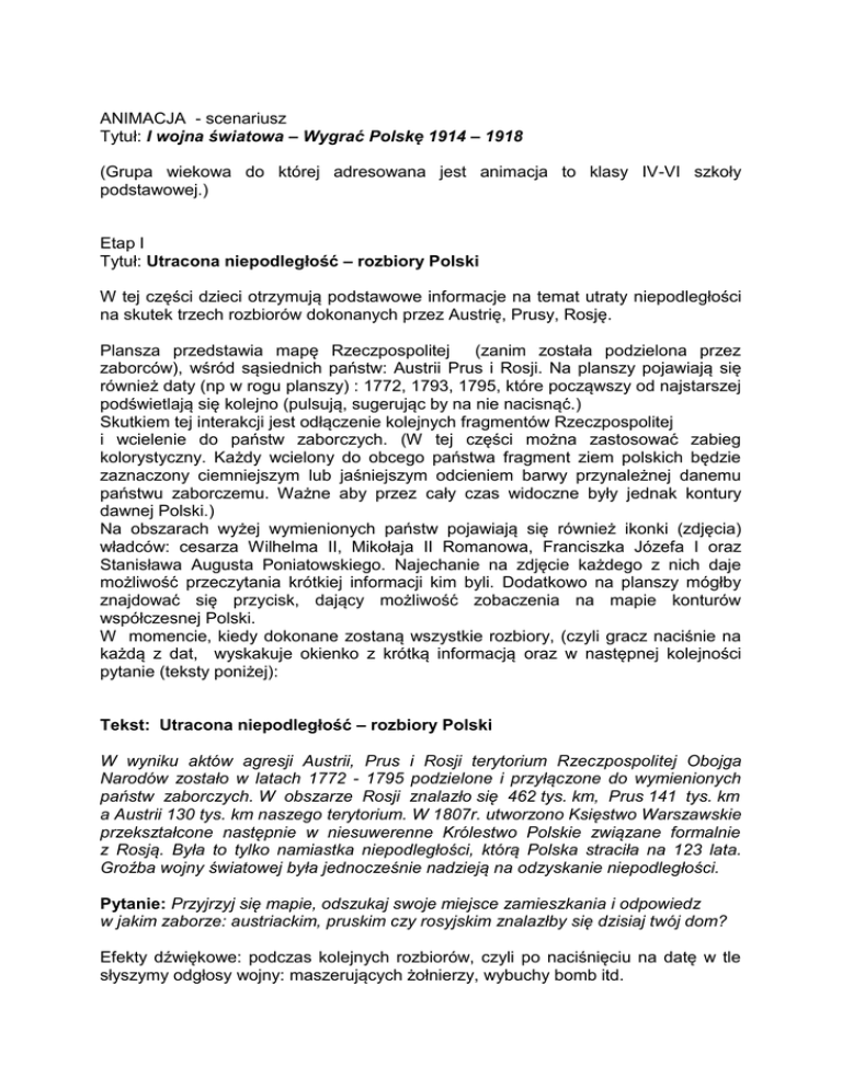 ANIMACJA - scenariusz Tytuł: I wojna światowa – Wygrać Polskę