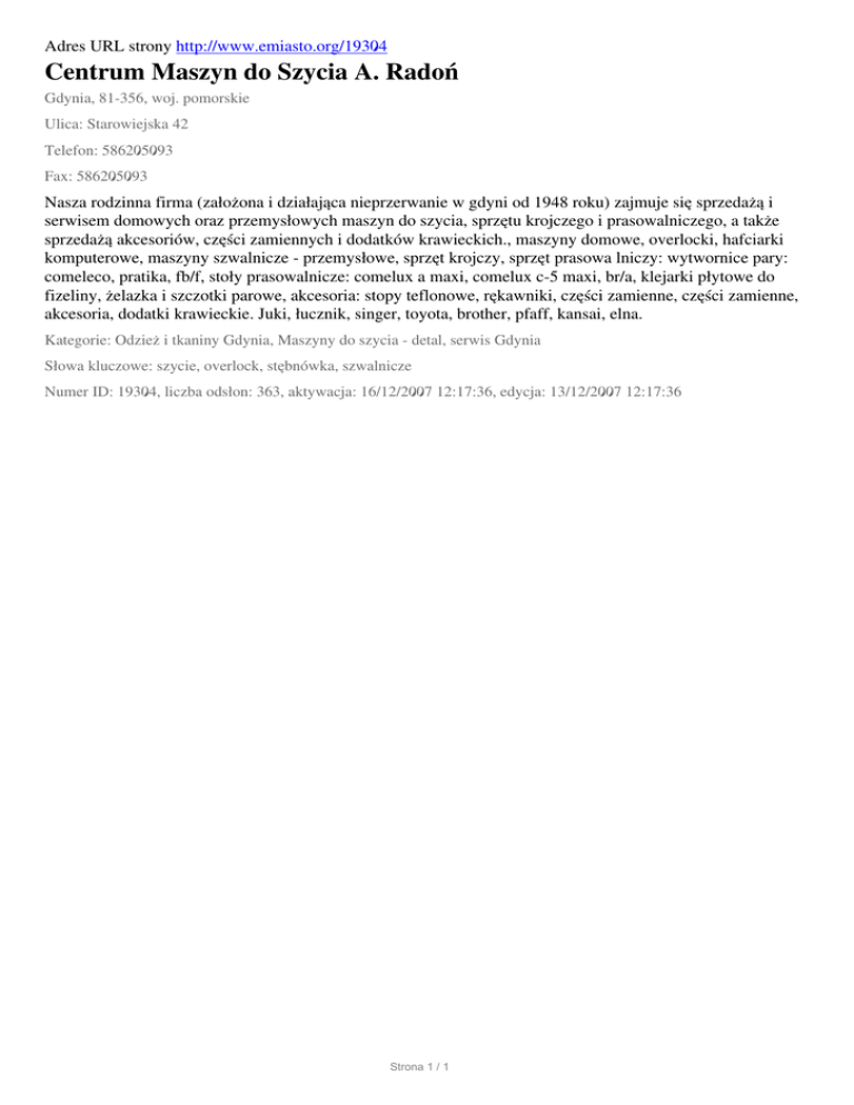 Centrum Maszyn do Szycia A. Radon, Gdynia