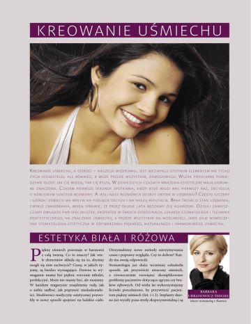 KREOWANIE UŚMIECHU K RE O W A N I E U Ś M I E C H U , A S ZE R ZE J – N A S ZE G O W I ZE R U N K U , J E S T N I E Z W Y K L E I S TO T NY M E L E M E N TE M N I E T Y L K O Ż YC I A O S O B I S TE G O , A L E RÓ W N I E Ż , A M OŻE P R ZE D E W S Z Y S T K I M , Z AWO D OWE G O . D ZE N I E G Ł O S I : J A K C I Ę W I D Z Ą , T A K C I Ę P I S Z Ą . N E Z N A C ZE N I E . CZASEM W WSZAK POPULARNE POWIE - D Z I S I E J S Z YC H C Z A S A C H W R A ŻE N I A E S TE T YC Z N E M A J Ą O GRO M - P I E R W S ZE S E K U N D Y S P O T K A N I A , K I E D Y K TO Ś W I D Z I N A S P I E R W S Z Y R A Z , D E C YD U J Ą O K O Ń C O W Y M S U K C E S I E ROZ M O W Y . A J E Ś L I N A S Z ROZ M ÓWC A D O J R Z Y U BY TE K W U ZĘ B I E N I U ? I S ZE RO K I U Ś M I E C H M A W P Ł Y W N A P O D J Ę C I E D E C Y Z J I I N A N A S Z Ą RE P U T A C J Ę . BRAK C ZĘ S TO S ZC ZE R Y T RO S K I O S T A N U ZĘ B I E N I A , Z W Y K Ł E Z A N I E D B A N I A , M O G Ą S P R AW I Ć , ŻE P R ZE Z D Ł U GI E L A T A B Ę D Z I E MY Ź L E K O J A R ZE N I . DZISIAJ ZAMIESZ- C Z A MY D W U G Ł O S P A Ń S P E C J A L I S TE K , E K S P E R TE K W S WO I C H D Z I E D Z I N A C H , L E K A R Z A S TO M A TO L O G A I TE C H N I K A D E N T Y S T YC Z N E G O , N A Z N A C ZE N I E U Ś M I E C H U , A P R ZE D E W S Z Y S T K I M N A M OŻ L I WO Ś C I , J A K I E D A J E N OWO C ZE S N A S TO M A TO L O GI A E S TE T YC Z N A W O D T W A R Z A N I U P I Ę K N E G O , N A T U R A L N E G O I H A R M O N I J N E G O U Ś M I E C H U . ESTETYKA BIAŁA I RÓŻOWA P iękny uśmiech pozostaje w harmonii z całą twarzą. Co to znaczy? Jak wiele elementów składa się na to, abyśmy mogli się nim zachwycić? Czasy, w jakich żyjemy, są bardzo wymagające. Dziwne to wymagania: mamy być piękni, wiecznie młodzi, perfekcyjni. Może nie mamy być, ale możemy. W każdym magazynie znajdziemy rady, jak o siebie zadbać, jak poprawić niedoskonałości. Możliwości medycyny estetycznej pozwoliły w nowy sposób spojrzeć na ludzkie ciało. Otrzymaliśmy nowe metody zatrzymywania czasu i poprawy wyglądu. Czy to dobrze? Każdy ma swoją odpowiedź. Stomatologia już dużo wcześniej odnalazła sposób, jak przywrócić utracony uśmiech, a równocześnie rozwiązać skomplikowane problemy pacjentów dotyczące zgryzu czy braków zębowych. Od wielu lat wykorzystujemy licówki porcelanowe, by przywrócić pacjentom piękny uśmiech (fot. 1 i 2). Implanty dawno już wyszły poza strefę eksperymentalną i są BARBARA URBANOWICZ-ŚMIGIEL lekarz stomatolog z Katowic NR 19 / 2012 • LADY’S CLUB 83 podstawowym sposobem leczenia na całym świecie. Nim przystąpimy do ostatecznego wykonania koron porcelanowych czy licówek, na podstawie modeli gipsowych zębów i zdjęć wspólnie z pacjentem analizujemy jego sytuację, omawiamy leczenie (fot. 7). Przygotowujemy próbny model przyszłego uśmiechu, dzięki czemu pacjenci mogą przygotować się do zmiany swojego wizerunku (fot. 8), mają czynny udział w jego planowaniu i kreowaniu. Mogą też dowiedzieć się, jakimi zasadami rządzi się stomatologia estetyczna, ponieważ dzięki takim spotkaniom poznają lepiej jej tajniki. Jednak niekoniecznie każdy biały uśmiech jest piękny, gdy brakuje harmonii. Harmonia rządzi się detalem. W stomatologii mówi się o estetyce białej i różowej. Biała dotyczy zębów, różowa dziąseł. Przebieg linii dziąseł ma taki sam wpływ na wygląd uśmiechu, jak układ zębów. Jeśli dziąsło będzie miało różną wysokość nad zębami, powstanie wrażenie nierównych zębów, zwłaszcza u tych osób, które pokazują dziąsła w uśmiechu (fot. 5 i 6). W pięknym, młodzieńczym 84 NR 19 / 2012 • LADY’S CLUB 1 PRZED LECZENIEM 2 PO WYKONANIU LICÓWEK PORCELANOWYCH 3 LINIA UŚMIECHU PROSTA 4 LINIA UŚMIECHU SYMETRYCZNA DO WARGI DOLNEJ uśmiechu zęby górne są widoczne i ułożone symetrycznie do łuku wargi dolnej (fot. 3 i 4). Jeśli skupimy się na samych zębach, to też obowiązują nas pewne zasady. Jedynki są długości trójek, a dwójki nieco krótsze. Kąty przyśrodkowe jedynek powinny być równe, jedynki są zawsze szersze od dwójek. A same zęby? Ich kształt może być zbliżony do trójkąta lub kwadratu, mogą być długie lub krótsze. Żeby były ładne, muszą pasować do danej osoby, jej wieku, płci, postury ciała. Powinny być wszystkie w tym samym odcieniu, ponieważ nikogo nie zachwyci jeden ząb ciemny, a drugi zbyt jasny. Uwagę naszą zwykle przykuwa jakiś defekt, może to być za duży nos, złamany ząb czy niedoskonała cera. Niestety, nasza uwaga skupia się również na karykaturalnie „poprawionych” częściach naszego ciała, na przykład zbyt białych, nienaturalnych zębach. Nie ma wtedy równowagi, z estetyką niewiele ma to wspólnego. Wygląda na to, że piękno zawarte jest w harmonii, gdy wszystkie elementy wizerunku są w równowadze. 5 LINIA PRZEBIEGU DZIĄSEŁ PRZED LECZENIEM 6 LINIA PRZEBIEGU DZIĄSEŁ PO LECZENIU 7 MODEL GIPSOWY ZĘBÓW 8 WSTĘPNA SYMULACJA NOWEGO KSZTAŁTU ZĘBÓW NA MODELU GIPSOWYM BLIŻEJ NATURY K iedy zostałam absolwentką wydziału techniki dentystycznej, nie sądziłam, że moja praca będzie tak mocno związana ze sztuką. Sztuką kreowania ludzkiego uśmiechu. Społeczeństwo nastawione jest przede wszystkim na konsumpcję dóbr nowoczesnego świata. W zasięgu ręki mamy wszelkie dobra, począwszy od elektroniki, po DOROTA MICHALIK osiągnięcia medyczne. Stajemy technik dentystyczny z Warszawy się coraz bardziej świadomym społeczeństwem, dbającym o zdrowie i wygląd zewnętrzny. Właśnie wygląd zewnętrzny odgrywa szczególną rolę w naszym codziennym życiu. Każdy z nas chce być młody i piękny do późnej starości. Osiągniecie tego wymaga nie tylko interdyscyplinarnego trybu życia, ale także wielu zabiegów kosmetyczno-stomatologicznych. Piękny, zdrowy uśmiech stanowi dziś klucz do suk