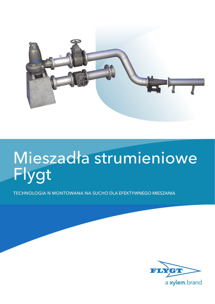 Mieszadła strumieniowe Flygt TECHNOLOGIA N MONTOWANA NA SUCHO DLA EFEKTYWNEGO MIESZANIA Perfekcyjne mieszanie Jako pionier w dziedzinie mieszadeł zatapialnych, firma Xylem od 50 lat stoi na czele rozwoju technologii mieszania. Mieszadła strumieniowe Flygt firmy Xylem łączą opatentowaną technologię pompy Flygt N z nowatorskim zespołem eżektora, tworząc unikalny, wysokosprawny i efektywny system mieszania. Są one idealnymi rozwiązaniami dla wymagających technologii ścieków i osadów, w których preferowane są instalacje suche. Pompa Flygt N Dynamiczny duet Zapobieganie sedymentacji zawiesin jest nieustającym wyzwaniem w technologii ścieków. Minimalizowanie osiadania cząstek stałych i w konsekwencji tworzenia się złogów osadu wymaga silnego przepływu masowego. Mieszadła strumieniowe Flygt właśnie taki przepływ zapewniają. Połączenie dwóch innowacyjnych rozwiązań Flygt w jeden skuteczny system mieszadła strumieniowego zapewnia najwyższą sprawność, przy najniższym możliwym koszcie eksploatacyjnym. Ten niezwykle uniwersalny, montowany do podłoża system zapewnia odpowiednio wysokie parametry mieszania w zbiornikach przy częściowym napełnieniu i niskim poziomie cieczy, jak również w zbiornikach napełnionych całkowicie. Dysza Rura eżektora Rozszerzony wlot dzwonowy Na zewnątrz zbiornika Wewnątrz zbiornika Jak działa Korzyści Mieszadło strumieniowe Flygt zawiera następujące podstawowe elementy: rozszerzony wlot dzwonowy, pompę Flygt N, dyszę i rurę eżektora. Te współpracujące elementy optymalizują mieszanie ścieków lub osadów. Wlot dzwonowy zwiększa dynamikę dopływu do pompy redukując straty hydrauliczne. Zespół dyszy i rury eżektora zwiększa wydatek strumienia wylotowego do zbiornika, poprzez powiększenie pola przekroju poprzecznego strumienia. W sumie przyczynia się to do zwiększenia sprawności energetycznej, a to z kolei zapewnia znaczne oszczędności. Maksymalna sprawność i wydajność mieszania Długotrwała sprawność pompy i redukcja kosztów energii Kompaktowa konstrukcja pompy, niewymagająca specjalnej obudowy Łatwy dostęp i serwis poza zbiornikiem Możliwość pracy przy niskim poziomie cieczy Skuteczna obróbka osadów, o koncentracji do 8% suchej masy 2 Pompa Flygt N W przeciwieństwie do konwencjonalnych pomp pompujących ciecze z zawartością cząstek stałych, w których doświadcza się utraty sprawności wskutek zatykania, pompy Flygt N utrzymują sprawność na niezmienionym poziomie niezależnie składu cieczy. Określamy to mianem trwałej sprawności. Jest to możliwe dzięki opatentowanym rozwiązaniom samooczyszczajacej hydrauliki pomp N obejmującym odgięte skośnie do tyłu krawędzie łopatek wirnika, rozszerzający się rowek odprowadzający oraz zintegrowany trzpień naprowadzający. Rezultat: maksymalny okres wysokiej sprawności przy minimalnych kosztach. Pompa Flygt N to niezawodny partner nawet w najtrudniejszych zastosowaniach. Oprócz wyjątkowej odporności na zatykanie, opatentowana technologia pomp N pozwala na przesyłanie osadów komunalnych o koncentracji nawet do 8% suchej masy. Dla aplikacji do cieczy zawierających materiały ścierające, dostępna jest wersja hydrauliki z trwałego żeliwa Hard-Iron™, utrzymująca maksymalną sprawność eksploatacyjną pomp N. Pompy Flygt N są także dostępne w wersji przeciwwybuchowej. Instalacja sucha pomp zatapialnych Flygt N charakteryzuje się wyraźnymi zaletami wewnętrznymi i zewnętrznymi. W przeciwieństwie do konwencjonalnych pomp instalowanych na sucho, pompy Flygt N wyposażane są w silnik elektryczny zintegrowany z zespołem hydraulicznym, umieszczone w jednej obudowie (konstrukcja monoblokowa). Sprawia to, że pompy Flygt N są bardziej zwarte, a tym samym łatwiejsze i tańsze w montażu. Ponadto pompy, które z defininicji są pompami zatapialnymi, odporne są również na zalanie. Co więcej, nie jest wymagana zewnętrzna obudowa ochraniająca elementy pomp, a to z kolei znacząco zmniejsza koszty instalacji. Dzięki inteligentnej konstrukcji oraz praktycznie bezawaryjnej eksploatacji, całkowite koszty cyklu życiowego pomp są utrzymywane cały czas na niskim poziomie. Zrównoważona konstrukcja oznacza także mniejsze zużycie energii, a tym samym niższą emisję dwutlenku węgla. Opatentowane własności hydrauliki N obejmują wirnik z krawędziami łopatek odgiętymi skośnie do tyłu, rozszerzający się rowek odprowadzający oraz zintegrowany trzpień naprowadzający zapewniając utrzymanie sprawności. Komputerowa symulacja dynamiki cieczy pokazuje jednoznacznie oddziaływanie pomiędzy dyszą wylotową, a rurą eżektora. Strumień pierwotny jest wzmacniany w następstwie generowania strumienia wtórnego. Innowacyjny zespół eżektora Starannie zaprojektowany, niezatykający się zespół eżektora składa się z dużej dyszy wylotowej oraz rury eżektora ze specjalnie ukształtowanym wlotem. Średnica wylotu dyszy została zaprojektowana tak, aby przepuścić ciała stałe o takiej wielkości jak przelot pompy. Pompa generuje pierwotny strumień doprowadzany do zbiornika poprzez system rurociągów zakończonych dyszą. Gdy strumień ten wprowadzany jest do rury eżektora, indukowany jest z otaczającej cieczy strumień wtórny. Zwiększanie sprawności mieszania dzięki mieszadłom strumieniowym Flygt Łatwy dostęp i konserwacja. Ponieważ wewnątrz zbiornika nie ma żadnych ruchomych części mechanicznych, dostęp i konserwacja są ułatwione. W przypadku konieczności naprawy, personel serwisowy może w łatwy sposób uzyskać dostęp do pompy, będąc na zewnątrz zbiornika. Ułatwia to i przyspiesza znacznie wszelkie prace oraz pozwala zaoszczędzić czas i pieniądze. czeństwa i zdrowia pracowników, ze względu na minimalne oddziaływanie patogenów zawartych w ściekach. Niższe nakłady inwestycyjne. Pompę mieszadła strumieniowego można wykorzystywać do napełniania zbiornika, s