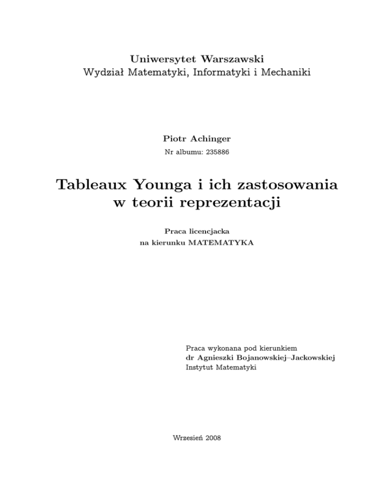 Younga oraz ich wybrane zastosowania: dla teorii funkcji symetrycznych (wielomiany Schura),