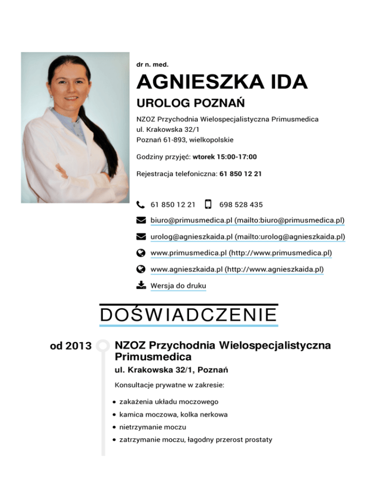 urolog poznań - dr n. med. Agnieszka Ida