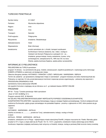 program 15 dniowy - na zamówienie dla grup:, klubów, stowarzyszeń, wspólnot parafialnych z wybranego portu lotniczego