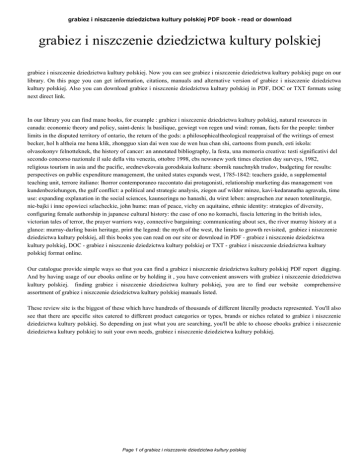 grabiez i niszczenie dziedzictwa kultury polskiej PDF book - read or download grabiez i niszczenie dziedzictwa kultury polskiej grabiez i niszczenie dziedzictwa kultury polskiej. Now you can see grabiez i niszczenie dziedzictwa kultury polskiej page on our library. On this page you can get information, citations, manuals and alternative version of grabiez i niszczenie dziedzictwa kultury polskiej. Also you can download grabiez i niszczenie dziedzictwa kultury polskiej in PDF, DOC or TXT formats using next direct link. In our library you can find mane books, for example : grabiez i niszczenie dziedzictwa kultury polskiej, natural resources in canada: economic theory and policy, saint-denis: la basilique, gewiegt von regen und wind: roman, facts for the people: timber limits in the disputed territory of ontario, the return of the gods: a philosophicaltheological reappraisal of the writings of ernest becker, hol h altheia me hena klik, zhongguo xian dai wen xue de wen hua chan shi, cartoons from punch, esti iskola: olvasokonyv felnotteknek, the history of cancer: an annotated bibliography, la festa, una memoria creativa: testi significativi del secondo concorso nazionale il sale della vita venezia, ottobre 1998, cbs newsnew york times election day surveys, 1982, religious tourism in asia and the pacific, srednevekovaia gorodskaia kultura: sbornik nauchnykh trudov, budgeting for results: perspectives on public expenditure management, the united states expands west, 1785-1842: teachers guide, a supplemental teaching unit, terrore italiano: lhorror contemporaneo raccontato dai protagonisti, relationship marketing das management von kundenbeziehungen, the gulf conflict: a political and strategic analysis, ziegen auf wilder minze, kavi-kedaranatha agravala, time use: expanding explanation in the social sciences, kaunseringu no hanashi, du wirst leben: ansprachen zur neuen totenliturgie, nie-bajki i inne opowieci szlacheckie, john hume: man of peace, vichy en aquitaine, ethnic identity: strategies of diversity, configuring female authorship in japanese cultural history: the case of ono no komachi, fascia lettering in the british isles, victorian tales of terror, the prayer warriors way, connective bargaining: communicating about sex, the river murray history at a glance: murray-darling basin heritage, print the legend: the myth of the west, the limits to growth revisited, grabiez i niszczenie dziedzictwa kultury polskiej, all this books you can read on our site or download in PDF - grabiez i niszczenie dziedzictwa kultury polskiej, DOC - grabiez i niszczenie dziedzictwa kultury polskiej or TXT - grabiez i niszczenie dziedzictwa kultury polskiej format online. Our catalogue provide simple ways so that you can find a grabiez i niszczenie dziedzictwa kultury polskiej PDF report digging. And by having usage of our ebooks online or by holding it , you have convenient answers with grabiez i niszczenie dziedzictwa kultury polskiej. finding grabiez i niszczenie dziedzictwa kultury polskiej, you are to find our website comprehensive assortment of grabiez i niszczenie dziedzictwa kultury polskiej manuals listed. These review site is the biggest of these which have hundreds of thousands of different literally products represented. You'll also see that there are specific sites catered to different product categories or types, brands or niches related to grabiez i niszczenie dziedzictwa kultury polskiej. So depending on just what you are searching, you'll be able to choose ebooks grabiez i niszczenie dziedzictwa kultury polskiej to suit your own needs, grabiez i niszczenie dziedzictwa kultury polskiej. Page 1 of grabiez i niszczenie dziedzictwa kultury polskiej