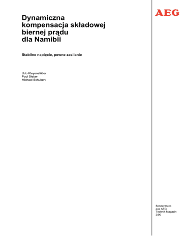 Dynamiczna kompensacja składowej biernej prądu dla Namibii Stabilne napięcie, pewne zasilanie Udo Kleyenstüber Paul Sieber Michael Schubert Sonderdruck aus AEG Technik Magazin 3/90 Zaopatrzenie w energie elektryczną dla Namibii opiera się jedynie na dwóch elektrowniach, i dostawach prądu z Afryki Południowej. Obszar zasilania jest bardzo rozciągnięty, więc stanowiska zasilające i użytkownik połączone są ze sobą przez specjalną długą linię wysokiego napięcia. Z tego powodu powstają w efekcie problemy związane z utrzymaniem określonej wartości napięcia jak również bezpieczeństwa dostawy. AEG zbudowało w centralnym punkcie sieci urządzenie kompensujące składową bierną prądu, dzięki któremu proporcje sieciowe zostaną znacznie polepszone. Stabilne napięcie, pewne zasilanie Dostawca energii elektrycznej w Namibii, SWAWEK opiera się na dwóch elektrowniach z mocą 360 MW, 7900 km sieci elektroenergetycznej, 64 większych stacjach transformatorowych, ok. 1600 MVA zainstalowanej mocy transformatorów i 200 MW połączeniu do ESKOM, dostawcy energii elektrycznej Południowej Afryki. Z powodu dużego odkształcenia powierzchniowego i gęstego zasiedlenia powstają w efekcie pomiędzy elektrowniami, punktami ciężkości użytkownika i zasilaniem ESKOM długie linie sieci elektroenergetycznej; powstają przez to problemy z utrzymaniem wartości napięcia. Niekorzystne wpływy na sieć elektroenergetyczną Namibii mają relatywnie częste burze, zabrudzenia izolatorów w regionie wybrzeża, zwarcia miedzy siecią a ziemia, przede wszystkim w 220 kV sieci, i zwierzęta (np. małpy albo sowy); przyczyną dalszych zakłóceń są przebicia wywołane przez pożary lasów i zerwania przewodów przez korozje w regionach wybrzeża. Z tym związane jest zrzucanie obciążeń prowadzące do wahań mocy i do krótkotrwałego zaniku napięcia w sieci. Struktura zaopatrzenia energetycznego Namibii Przyglądając się geograficznie sieci elektroenergetycznej Namibii jest ona długą linią rozciągającą się od północnego-zachodu na południe. Na północy znajduje się elektrownia wodna Ruacana, która leży nad rzeką Cunene, budującą granicę z Angolą. Elektrownia z mocą 3 x 80 MW jest połączona z ponad 520 km długą 330 kV pojedynczą linią napowietrzną i bezzałogową stacją transformatorową Omburu. Stamtąd odbywa się dalsze rozdzielenie energii 220 kV w przeróżnych kierunkach. Sieć SWAWEK, na południu połączona jest z większą siecią ESKOM, a mianowicie z 160 km długą 220 kV pojedynczą linią napowietrzną do elektrowni węglowej Van Eck, która może zasilać sieć 120 MW, i z 830km długą 220 kV podwójną linią napowietrzną Van Eck – Aggeneis, punkt połączenia do sieci prądowej ESKOM. Sytuacje problematyczne w sieci W tej sieci są dwa problematyczne stany pracy. Krytyczny stan występuje, gdy elektrownia w Ruacana jest wyłączona, w elektrowni Van Eck generator dostarcza tylko 10 MW i pozostała moc jest dostarczana z sieci ESKOM. W tym wypadku napięcie, szczególnie w węźle Omburu, nie jest dłużej zatrzymane w dopuszczalnej granicy. Musi zostać również przenoszona chwiejna moc między 130 MW i 200 MW na odległość niemal 1000 km z prądem zmiennym 220 kV. 2 Drugi problematyczny przypadek występuje, kiedy połączenie Omburu - Van Eck zostanie przerwane przez zakłócenie. Dla elektrowni w Ruacana, która dostarcza pełną moc, oznacza to odciążenie prowadzące do odłączenia elektrowni, również tylko jakieś 80 MW zostanie rozesłane w pozostałych kierunkach. Moment bezwładności hydrogeneratorów, składających się z turbin Francisa jak również generatorów synchronicznych, jest znacznie większy jak napędzanych parą turbogeneratorów, regulatory turbin wodnych musza również pracować relatywnie wolno, aby uniknąć dużego ciśnienia w rurach tłocznych, równa się to znacznemu zwiększeniu liczby obrotów, zanim liczba obrotów łopatki, zostanie uregulowana. Wzrastająca liczba obrotów połączona jest ze wzrostem częstotliwości, reaktancja pojemnościowa stanie się mniejsza a indukcyjność większa. Prowadzi to do wzrostu napięcia o prawie 30%, chociaż podczas przepięcia po 1,55 sekundy w Omburu zostaje załączona 60MVar zbiorcza szyna cewek dławikowych. Napięcie zostaje przywrócone po ok. czterech sekundach do częstotliwości 61 Hz po przejściowym rozłączeniu. Od tego punktu czasowego spada napięcie i częstotliwość. Prosta budowa sieci elektroenergetycznej w Namibii. Jest to długa, rozciągająca się od północnegozachodu na południe linia składająca się w większości z pojedynczej linii napowietrznej, która osadzona jest na stalowych masztach. Modelowe obliczenia, wykonane przez ESKOM dla SWAWEK, pokazały, że problem utrzymania napięcia w pierwszym z dwóch krytycznych przypadków pracy mógłby zostać zredukowany dzięki kompensatorowi mocy biernej, który może być uregulowany w przedziale od 15 MVar (indukcyjnie) do 40 MVar (pojemnościowo). Dla tego rodzaju zadań kompensacyjnych, AEG rozwinęło tyrystorowe kompensatory mocy biernej, które zostały określone jako Static Var Compensators SVC. Taki kompensator przejmuje regulację napięcia przez dynamiczne dopasowanie jego mocy biernej dla warunków sieci. Składa się z dwóch istotnych komponentów: kondensatorów ze stałą pojemnością przewodności biernej i cewek dławikowych TCR, indukcyjna przewodność bierna może zostać przestawiona przez tyrystory bardzo szybko i w sposób ciągły miedzy 0 i wartością znamionową (TCR thyristor controlled reactor). Również suma przewodności biernej kondensatorów i cewek dławikowych jest regulowana. Kondensatory zostaną dołączone do obwodu kompensującego przez wstępne cewki dławikowe i przejmą również prądy wyższych harmonicznych z sieci i cewek dławikowych. Zmniejszają tym samym zniekształcenia napięcia w sieci. Podłączenie kompe