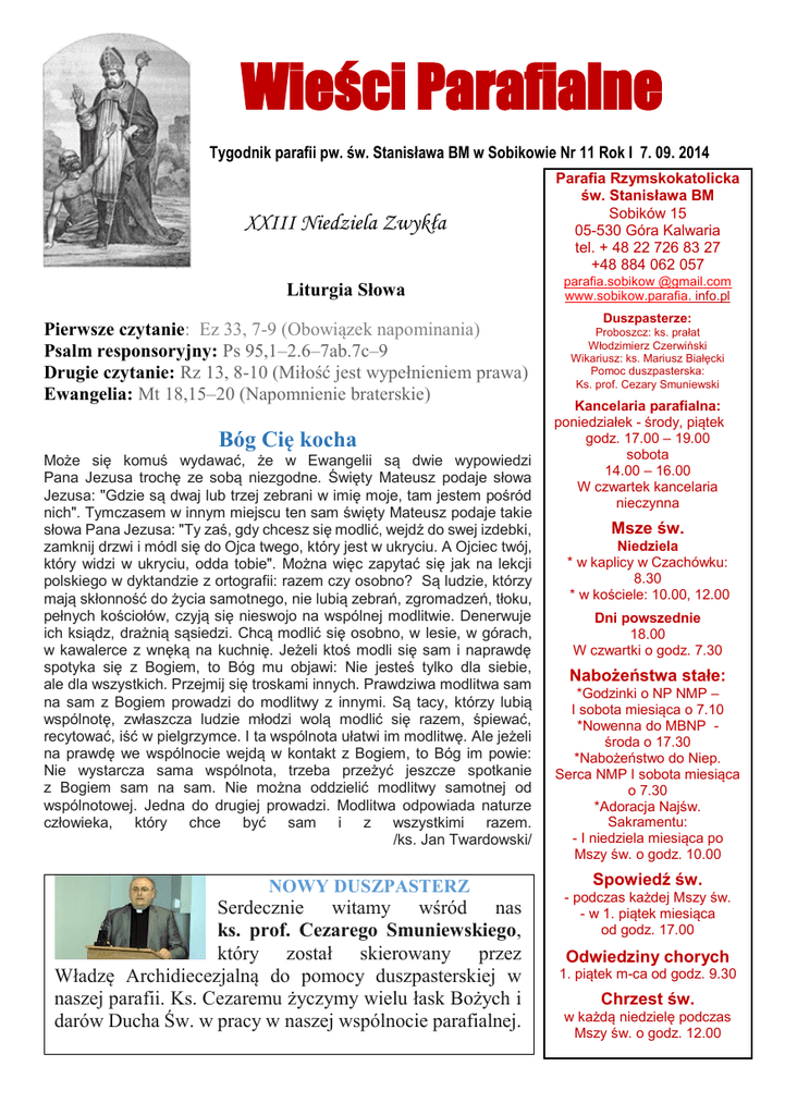 Wieści Parafialne - Parafia Św. Stanisława w Sobikowie