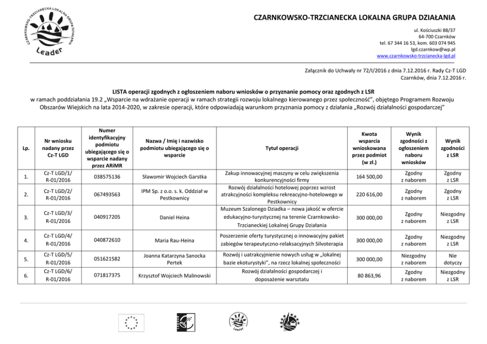 LISTA operacji zgodnych z ogłoszeniem naboru wniosków o
