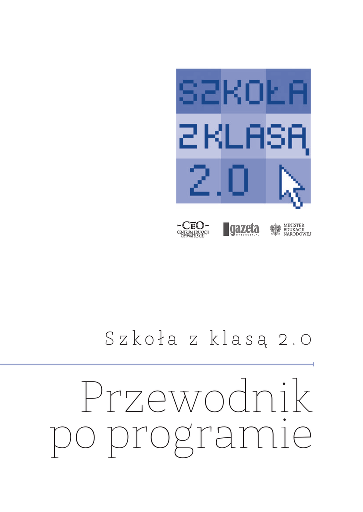 Szkoł a z kl as ą 2.0 Przewodnik po programie Autorzy: Alicja Pacewicz, Piotr Pacewicz, Anna Gilla, Agata Łuczyńska W publikacji wykorzystano następujące materiały: ––Jacek Strzemieczny, Jak organizować i prowadzić gimnazjalne projekty edukacyjne. Poradnik dla dyrektorów, szkolnych organizatorów i opiekunów projektów, ORE, 2010; ––Grażyna Czetwertyńska, Alicja Pacewicz, Jak pracować metodą projektu edukacyjnego, materiał opracowany na potrzeby programu ‹Szkoła z klasą”; ––Zdzisław Nowakowski, Co musi umieć nauczyciel 2.0?, ‹Gazeta Wyborcza”, 1 października 2010 r.; ––Marta Owczarek, Googlajcie, a znajdziecie, ‹Gazeta Wyborcza”, 2 października 2010 r.; ––Dorota Janczak, Ewa Kędracka, Małgorzata Rostkowska, Technologie informacyjno-komunikacyjne w projekcie gimnazjalnym, OEiZK, 2010; ––Ewa Koclejda, Demokracja to rozmowa, czyli uczymy się dyskutować i debatować, http://www.ceo.org.pl/portal/b_koss_koss_dla_nauczycieli_jak_uczyc_kossa_ doc?docId=35164 [15 listopada 2010 r.]. ––Using sources. A guide for students: Find it – Check it – Credit it, The Office of Qualifications and Examinations Regulations. Qualifications and Curriculum Authority 2010, tłum. Łukasz Hibner; Redakcja: Agata Łuczyńska, Agata Łuksza, Alicja Pacewicz Korekta: Katarzyna Sołtan-Młodożeniec Zdjęcia: Hanna Karlic, Katarzyna Gilla, Krzysztof Ciszek, Tomasz Ratter W publikacji wykorzystano zdjęcia: Gimnazjum nr 12 w Poznaniu, Szkoły Podstawowej nr 1 w Raciborzu oraz Społecznego Gimnazjum ‹Dwójka” w Warszawie Projekt graficzny i skład: Zofia Herbich Użyto fontu St Marie (projekt: Sascha Timplan, www.stereotypes.de) oraz Titillium (projekt: pracow‑ nia typografii Accademia di Belle Arti di Urbino, www.campivisivi.net/titillium). Druk: Roband Program Szkoła z klasą 2.0 prowadzony jest przez Centrum Edukacji Obywatelskiej i ‹Gazetę Wyborczą‚ przy wsparciu Polsko-Amerykańskiej Fundacji Wolności i Fundacji Agora. Partnerami są Wydawnictwo Pedagogiczne OPERON i Fundacja Orange. Honorowym patronem programu jest Minister Edukacji Narodowej Katarzyna Hall. Spis treści 1. Wstęp. O programie Szkoła z klasą 2.0 4 2. Kodeks 2.0 2. 1. Po co Kodeks 2.0? 2. 2. Praca przez cały rok 2. 3. Problemy do rozstrzygnięcia – 7 punktów kodeksu 7 9 11 3. Zadania w I semestrze 3. 1. Debata klasowa 3. 2. Debata ogólnoszkolna 3. 3. Zadanie TIK 12 14 16 4. Zadania w II semestrze 4. 1. O projekcie edukacyjnym 4. 2. Projekt 2.0 4. 3. Festiwal 2.0 4. 4. Prezentacja Kodeksu 2.0 17 21 23 27 5. Materiały pomocnicze 5. 1. Jak aktywizować uczniów? 5. 2. TIK w nauczaniu – przykłady narzędzi 5. 3. Jak korzystać ze źródeł internetowych – poradnik dla uczniów 5. 4. Sprawdzian 2.0 5. 5. Karta projektu dla uczniów 5. 6. Debaty i dyskusje w szkole 29 31 33 36 39 41 1. Wstęp O programie Szkoła z klasą 2.0 Program Szkoła z klasą 2.0, kolejna odsłona naszej akcji edukacyjnej, w której od 2002 roku wzięło udział już prawie osiem tysięcy szkół, stawia pytania, jak uczyć w epoce Google’a i Wikipedii. Jak ma wyglądać mądra i skuteczna szkoła XXI wieku? Większość szkół jest dziś z grubsza taka, jak sto lat temu: nauczyciel stoi przed tablicą, coś opowiada, uczniowie notują (lub nie), w domu czytają podręcznik (lub nie), potem piszą klasówkę (tak). Jakby jeździli konnym tramwajem... A po szkole odpalają komputer i przesiadają się do rakiety. Edukacja, której celem jest wpakowanie w ucz niowskie głowy mnóstwa informacji, traci sens w erze technologii informacyjno-komunikacyjnych (TIK). Po co się tego wszystkiego uczyć, gdy można to w każdej chwili łatwo i szybko wyklikać? Jeszcze gorzej ze sprawdzaniem wiedzy. Strony Ściąga.pl czy bryk.pl dostarczają gotowych prac domowych. Wypracowanie.pl reklamuje się: ‹Nie zdążyłeś napisać wypracowania? Nie masz pomysłu, co w nim zawrzeć? Znajdziesz u nas szeroki wybór prac z j. polskiego, angielskiego, niemieckiego”. W programie Szkoła z klasa 2.0 zachęcamy, by otworzyć oczy na te sprzeczności. Zacząć rozmowę, która ma oswoić, przede wszystkim nauczycieli, dyrektorów, ale także rodziców i samych uczniów, z sytuacją, w której szkoła znalazła się w świecie – jeszcze niedawno – science fiction. I zobaczyć to jako wyzwanie i szansę. Dla kogo Szkoła 2.0? Do akcji zgłosiło się blisko 300 szkół, parę tysięcy nauczycieli, weźmie w niej udział kilkadziesiąt tysięcy uczniów. Ale Szkołę 2.0 otwieramy dla wszystkich, których szkoła dotyczy, ciekawi i boli. Może uda nam się wspólnie wymyślić, jak komputery, Internet, komórki – niezastąpione w komunikacji i zabawie – mogą pomóc w sensownej edukacji. Zamiast, jak do tej pory, głównie dostarczać gotowców, które zastępują samodzielne myślenie i twórczość, nie uczą rozwiązywania problemów i rozleniwiają uczniowskie umysły. Aby tak się stało, potrzebne są jednak nie tylko komputery i sieć, ale przede wszystkim inny sposób pracy z uczniami. Trzeba na bieżąco sprawdzać, co już potrafią; pokazywać im, po co się tego wszystkiego mają uczyć; budzić motywację i pasję; dawać informacje zwrotne zamiast gołych stopni; doceniać, a nie tylko oceniać; uczyć krytycznego korzystania ze źródeł (zwłaszcza internetowych!) i wspólnej pracy (także przy użyciu TIK). Liczymy na wzbudzenie zainteresowania lokalnych społeczności i władz, do których przecież docierają takie aktualne hasła jak strategia lizbońska czy cyfrowe wykluczenie, unowocześnieniem swoich szkół. Uczyć ciekawiej, także na WF Naiwna byłaby wiara, że nowe media to gwarancja mądrej edukacji. Potrafią zabierać czas i ogłupiać. Szkoła 2.0 to nie może być szkoła wyszukiwania i kopiowania, prostych testów interaktywnych, byle jakich ‹filmików edukacyjnych”. By nawiązać do poprzedniej edycji naszego programu, musi to być ‹szkoła myślenia” – s
