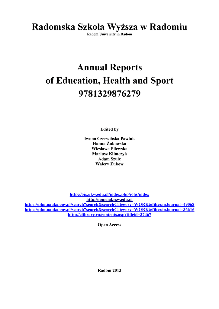 This articles is published w ith O pen Access at Annual Reports o f Education, Health and Sport o f Radomska Szkoła Wyższa w Radomiu, Poska, Radom University in Radom, Poland
