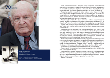Marek Dunin-Wąsowicz Ur. 1926 w Warszawie Były więzień KL Stutthof nr 35461 „Wtedy w obozie Niemcom coś się udało: zabić w nas człowieczeństwo… i to było straszne…” Ojciec Marka Dunin-Wąsowicza, Władysław, walczył w Legionach; po odzyskaniu niepodległości był dziennikarzem i znanym działaczem społecznym. Matka Janina społecznie prowadziła Szkołę Rodziny Wojskowej w Warszawie. Matką chrzestną Marka była przyjaciółka matki, Marszałkowa Aleksandra Piłsudska. Obie rodziny przyjaźniły się. Po ukończeniu szkoły powszechnej — już po wybuchu wojny — Marek Dunin-Wąsowicz uczył się zawodu w Szkole Handlowej i Mechanicznej w Warszawie. Już w 1940 roku wstąpił do Szarych Szeregów, a następnie do Armii Krajowej na Żoliborzu — pseudonim „Jack” — przydział do pułku „Baszta”. Jako harcerz i żołnierz AK przeszedł przeszkolenie wojskowe, kurs obsługi broni, przenosił meldunki itp. Aresztowany 13 kwietnia 1944 roku w domu wraz z bratem i rodzicami przez warszawskie gestapo. Wszyscy byli przesłuchiwani na Szucha, potem przewieziono ich do więzienia na Pawiaku. „Na przesłuchaniach odgrywałem rolę głupiego, naiwnego dziecka”. 24 maja 1944 roku wraz z bratem włączono go do prawie 900-osobowego transportu z Pawiaka do KL Stutthof. Rodzice pozostali na Pawiaku. W obozie oznaczony został numerem 35461. Początkowo trafił do najcięższej pracy w komandzie leśnym, gdzie głównym zajęciem więźniów było karczowanie drzew i równanie terenu pod rozbudowę obozu. W krótkim czasie stracił siły fizyczne i bliski śmierci z wycieńczenia sprowokował wypadek, dzięki któremu trafił do obozowego szpitala, gdzie polski lekarz uratował mu życie. Po wyleczeniu pracował w obozowych warsztatach rzemieślniczych. Przez cały czas opiekował się bratem, m.in. „organizując” dodatkową żywność. Ewakuowany w jednej z ostatnich kolumn ewakuacyjnych z obozu centralnego w dniu 25 stycznia 1945. Uciekł wraz z bratem z Marszu Śmierci w okolicach miejscowości Gęś w lutym 1945 roku. Przedostali się razem do Gdyni, gdzie dzięki pomocy krewnych doczekali wyzwolenia przez Armię Czerwoną. „Słowo — Stutthof — otwierało wszystkie drzwi, z czymś takim, z taką solidarnością nie spotkałem się nigdy później w życiu”. Z rodzicami bracia spotkali się ponownie w kwietniu 1945 roku w Krakowie. Po powrocie do Warszawy Marek Dunin-Wąsowicz wstąpił do wojska i był dziennikarzem w redakcji „Polski zbrojnej”. Po wystąpieniu z wojska (w końcu 1949 roku) do emerytury (w 1990) pracował jako dziennikarz i korespondent w „Życiu Warszawy” i „Rzeczpospolitej”. Jest autorem kilku pierwszych, wielkonakładowych popularnych opracowań dotyczących obozu Stutthof. Aktywnie działał w warszawskich stowarzyszeniach kombatanckich. Mieszka w Warszawie.