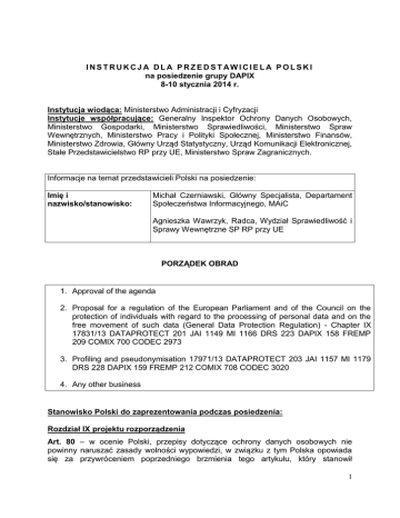 INSTRUKCJA DLA PRZEDSTAWICIELA POLSKI na posiedzenie