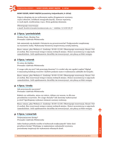 2 lipca / poniedziałek - Muzeum Etnograficzne w Krakowie