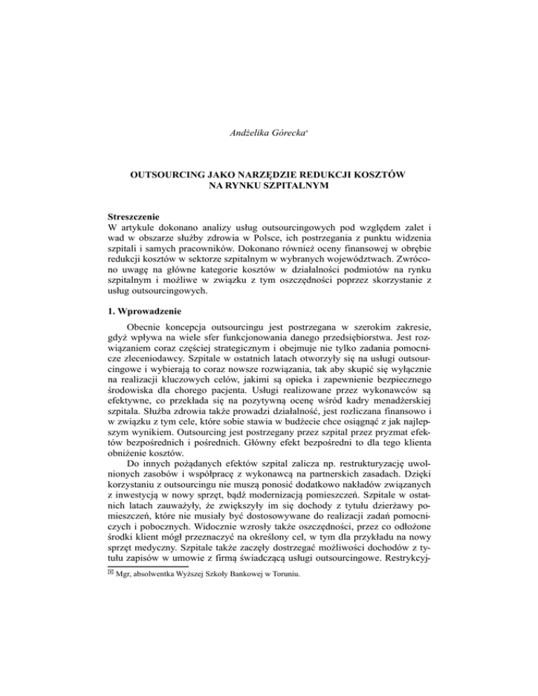 Andżelika Górecka OUTSOURCING JAKO NARZĘDZIE REDUKCJI