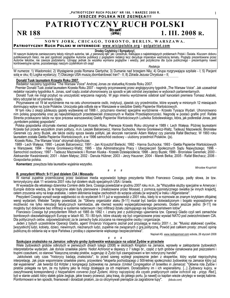 „PATRIOTYCZNY RUCH POLSKI” NR 188, 1 MARZEC 2008 R.