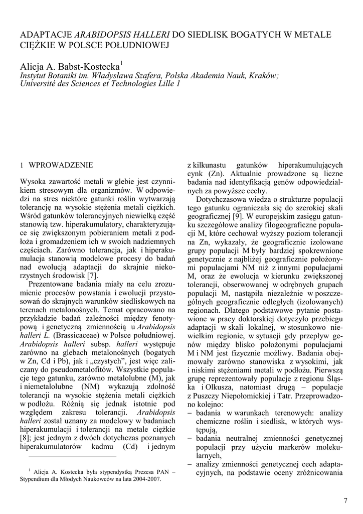 Adaptacje Arabidopsis halleri do siedlisk bogatych