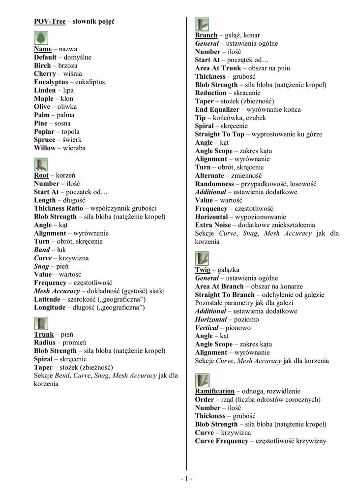 - 1 - POV-Tree – słownik pojęć Name – nazwa Default – domyślne