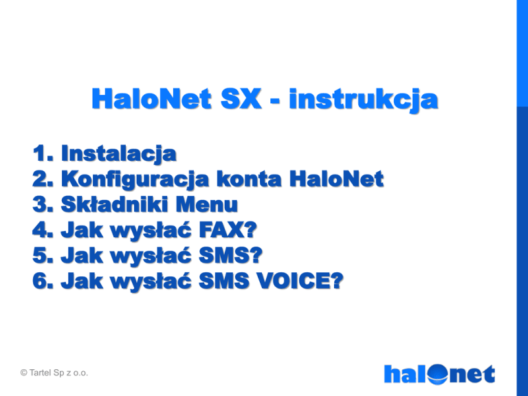 Instrukcja HaloNet SX (w tym wysyłki SMS VOICE)