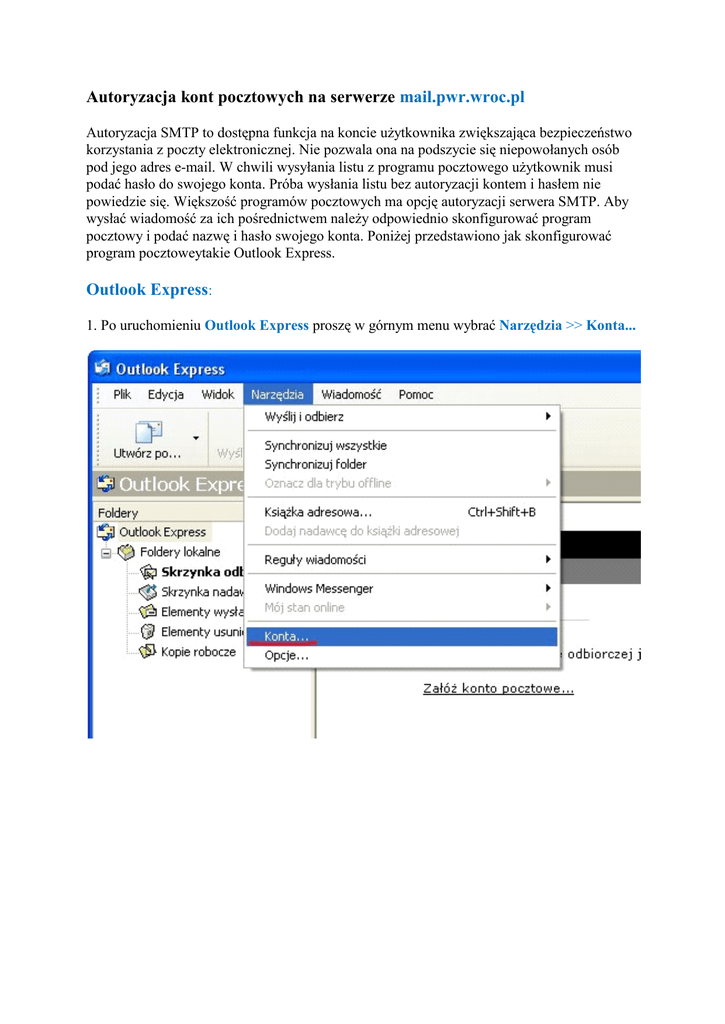Autoryzacja kont pocztowych na serwerze mail.pwr.wroc.pl Outlook