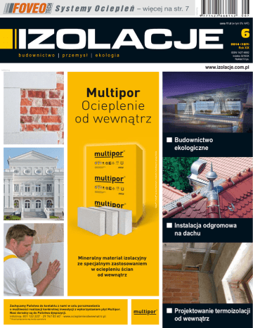 reklama – więcej na str. 7 0 6> cena 11 zł (w tym 5% VAT) 6 2014 (187) Rok XIX ISSN 1427-6682 Indeks 32163X Nakład 9 tys. www.izolacje.com.pl reklama Budownictwo ekologiczne Instalacja odgromowa na dachu Projektowanie termoizolacji od wewnątrz s. 24 METODYKA PROJEKTOWANIA IZOLACJI CIEPLNYCH OD WEWNĄTRZ s. 42 NIENISZCZĄCA DIAGNOSTYKA ZESPOLENIA WARSTW BETONOWYCH NA PRZYKŁADZIE POSADZEK Jerzy Hoła i Łukasz Sadowski przedstawiają opracowany nowy nieniszczący sposób diagnostyki zespolenia warstw betonowych na przykładzie posadzek, eliminujący mankamenty stosowanej do tego celu seminieniszczącej metody odrywania. Prezentują również metodykę tworzenia bazy danych na użytek nieniszczącej identyfikacji wartości przyczepności na odrywanie warstw betonowych, a także metodykę korzystania z takiej bazy w praktyce. s. 37 W drugiej części artykułu dotyczącego problemu naprawy rys w konstrukcjach żelbetowych metodą iniekcji Bogumiła Chmielewska oraz Jerzy Koper przedstawiają przykład konkretnego obiektu. Omawiają realizację prac w jednym z fundamentów. Autorzy podają także charakterystykę parametrów iniekcji. fot.: archiwa B. Orlik-Kożdoń, T. Steidla rys.: archiwa firm Bożena Orlik-Kożdoń oraz Tomasz Steidl opisują technologie i materiały stosowane do izolacji cieplnej oraz pokazują przykład wykonania takiej izolacji. Omawiają zasady i metodykę projektowania izolacji cieplnych od wewnątrz. Autorzy wykonują również przykładowe obliczenia rozkładu pola temperatury w odniesieniu do wybranych mostków cieplnych w elementach dwuwymiarowych oraz przedstawiają wyniki obliczeń przyrostu wilgotności przegrody zewnętrznej docieplonej od wewnątrz. NAPRAWA RYS W KONSTRUKCJACH ŻELBETOWYCH METODĄ INIEKCJI BALKONY s. 52 – ANALIZA NUMERYCZNA PARAMETRÓW CIEPLNO-WILGOTNOŚCIOWYCH W ŚWIETLE NOWYCH WYMAGAŃ CIEPLNYCH Obciążenie ruchem kołowym Nadmierne przemieszczenia Złącze 1 Wycięcie w płycie 2 4 U = 0,15 ti > 16°C U = 0,20 U = 0,25 5 6 7 8 INSTALACJA PIORUNOCHRONNA NA DACHU U = 0,15 U = 0,15 3 rys.: archiwa firm rys.: J. Hoła, Ł. Sadowski, K. Schabowicz Monika Dybowska i Krzysztof Pawłowski dokonują szczegółowej analizy porównawczej parametrów cieplnych złączy dwuwarstwowych ścian zewnętrznych z płytami balkonowymi. Przedstawiają wyniki obliczeń numerycznych wybranych rozwiązań konstrukcyjno-materiałowych. Okno: U = 0,90 9 s. 82 U = 0,30 Krzysztof Patoka charakteryzuje zagrożenie, jakie dla budynków i znajdujących się w nich urządzeń stanowią wyładowania elektryczne towarzyszące burzom. Opisuje wymagania dotyczące instalacji odgromowej oraz sposób jej funkcjonowania. Brak wymagań rys.: archiwa M. Dybowskiej, K. Pawłowskiego s. 58 Martyna Drećka opisuje właściwości celulozy jako materiału izolacyjnego. Przedstawia wyniki obliczeń wymaganej grubości izolacji celulozowej w wybranych przegrodach zewnętrznych. 4 1 2 5 4 rys.: Derowerk OCIEPLANIE PRZEGRÓD ZEWNĘTRZNYCH CELULOZĄ W ŚWIETLE NOWYCH WYMAGAŃ CIEPLNYCH 6 3 fot.: RuppKeramik nr 6/2014 INDEKS FIRM 45 8, 80, 81 8 53 10 10, 25 10 75 67 8 27 29 77, 83 11 1, 7, 11 8 8 14, 15 39 57 9 10 63 73 9 8 96 8 76 8 3 12, 13, 36 95 9, 10 8 2 55 11, 31 34, 35 85 64, 65, 66 33, 47 8, 9 9 9, 10 8 21, 22, 23 41 11 78, 79 1, 32 SPIS TREŚCI Alpol Austrotherm Barda Betomax Polska Blachy Pruszyński Bolix Busscher&Hoffmann Caparol Cembrit DOW Polska Ecovario Europanels, Grupa Włozamot Panel Fakro FFiL Śnieżka Foveo Tech FWS Genderka Grupa Polskie Składy Budowlane Hydrostop Instytut Mechanizacji Budownictwa i Górnictwa Skalnego Instytut Techniki Budowlanej ISO-Chemie Isocell Izopanel Klimas Wkręt-Met Magwent Mapei Polska Neotherm Okpol Paneltech Paroc Polska PCC Prodex Promat Techniczna Ochrona Przeciwpożarowa Polskie Stowarzyszenie Producentów Styropianu Polski Związek Producentów i Przetwórców Izolacji Poliuretanowych PUR i PIR „SIPUR” Quick-Mix Raba Recticel Izolacje Rockwool Polska Saint-Gobain Construction Products Polska, marka Isover Saint-Gobain Construction Products Polska, Biuro Rigips w Warszawie Sika Poland Stowarzyszenia na Rzecz Systemów Ociepleń (SSO) Stowarzyszenie Producentów Wełny Mineralnej: Szklanej i Skalnej MIWO Stowarzyszenie Wykonawców Dachów Płaskich i Fasad DAFA Styropoz Synthos Tikal Tilia Velux Xella 52 Izo-aktualności 8 8 I Międzynarodowa Konferencja ETICS 9 Doroczne spotkanie członków Stowarzyszenia DAFA Balkony – analiza numeryczna parametrów cieplno-wilgotnościowych w świetle nowych wymagań cieplnych 58 11 11 Foveo Tech tynk mozaikowy TD 50 64 12 PREZENTACJA 67 Z Grzegorzem Dołbniakiem – prezesem zarządu firmy PCC Prodex – rozmawia Jarosław Guzal PCC Prodex: wchodzimy na rynki międzynarodowe 14 Materiały i technologie 16 16 Magdalena Waltrowska, Tomasz Z. Błaszczyński Ekobudynki wysokie 24 68 36 ZDJĘCIA NA OKŁADCE Przegląd 76 76 80 80 82 Inhabitat.com RuppKeramik 42 archiwa B. Orlik-Kożdoń, T. Steidla 85 Izolacje termiczne z pianki poliuretanowej nr 6/2014 Termoizolacja dachów płaskich z zastosowaniem systemu Austrotherm DPS Krzysztof Patoka Izolacja dachu płaskiego w budynkach jednorodzinnych PREZENTACJA Bogumiła Chmielewska, Jerzy Koper 86 Naprawa rys w konstrukcjach żelbetowych metodą iniekcji (cz. 2). Przykłady napraw konstrukcji żelbetowej 87 88 Jerzy Hoła, Łukasz Sadowski Nieniszcząca diagnostyka zespolenia warstw betonowych na przykładzie posadzek Dachy ABC sztuki dekarskiej – cz. 96. Instalacja piorunochronna na dachu PREZENTACJA 37 Okna dachowe PREZENTACJA Multipor – ocieplenie ścian od wewnątrz PREZENTACJA Krzysztof Pawłowski Ściany zewnętrzne – kryteria wyboru rozwiązań materiałowych Bożena Orlik-Kożdoń, Tomasz Steidl Metodyka projektowania izolacji cieplnych od wewnątrz 32 Ściany, stropy 68 PSB-Profi – składy budowlane nowej generacji PREZENTACJA System elewacji wentylowanych – płyty płaskie alternatywą dla dotychczasowych dociepleń PREZEN