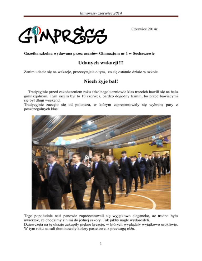 Gimpress- czerwiec 2014 - Gimnazjum nr 1 w Sochaczewie