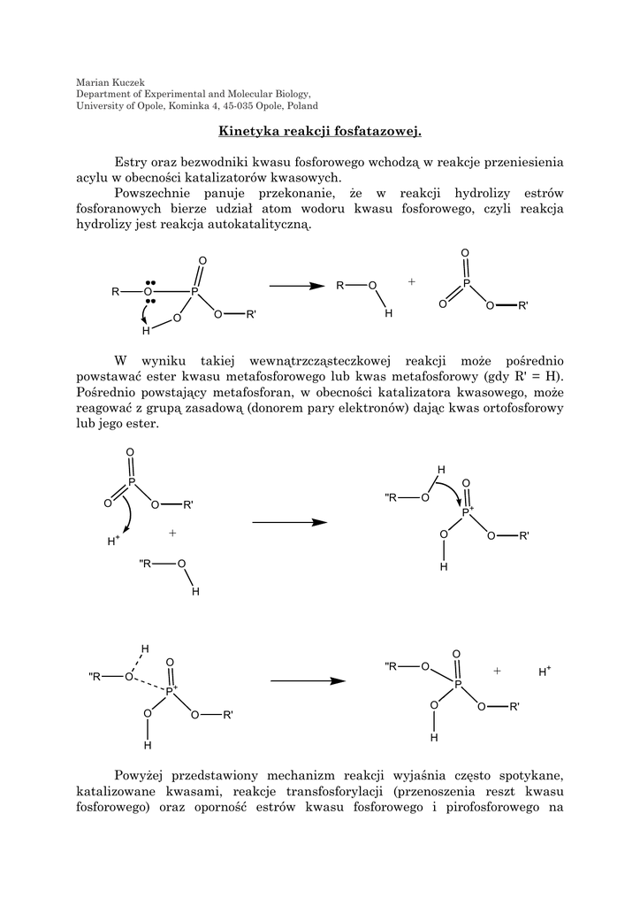 Kinetyka reakcji fosfatazowej. Estry oraz bezwodniki kwasu