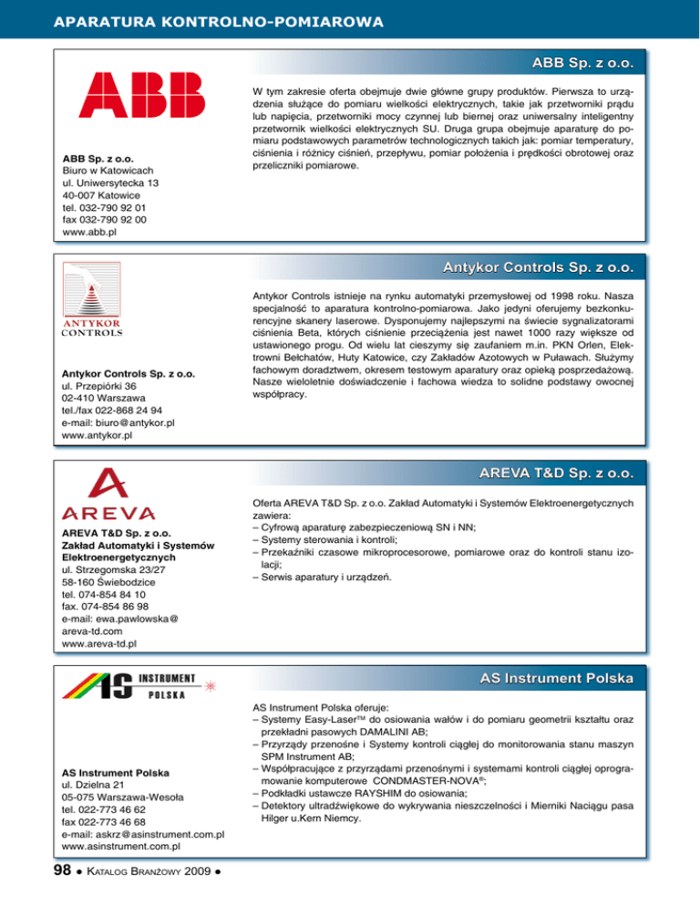 APARATURA KONTROLNO-POMIAROWA ABB Sp. z o.o. Antykor