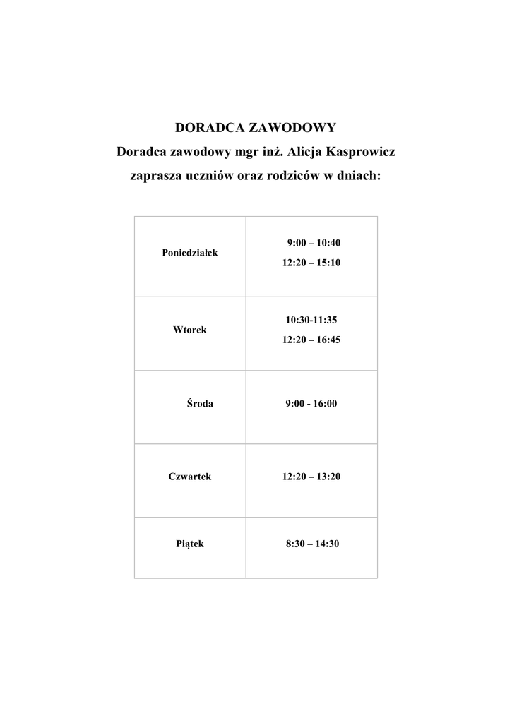 DORADCA ZAWODOWY Doradca zawodowy mgr inż. Alicja