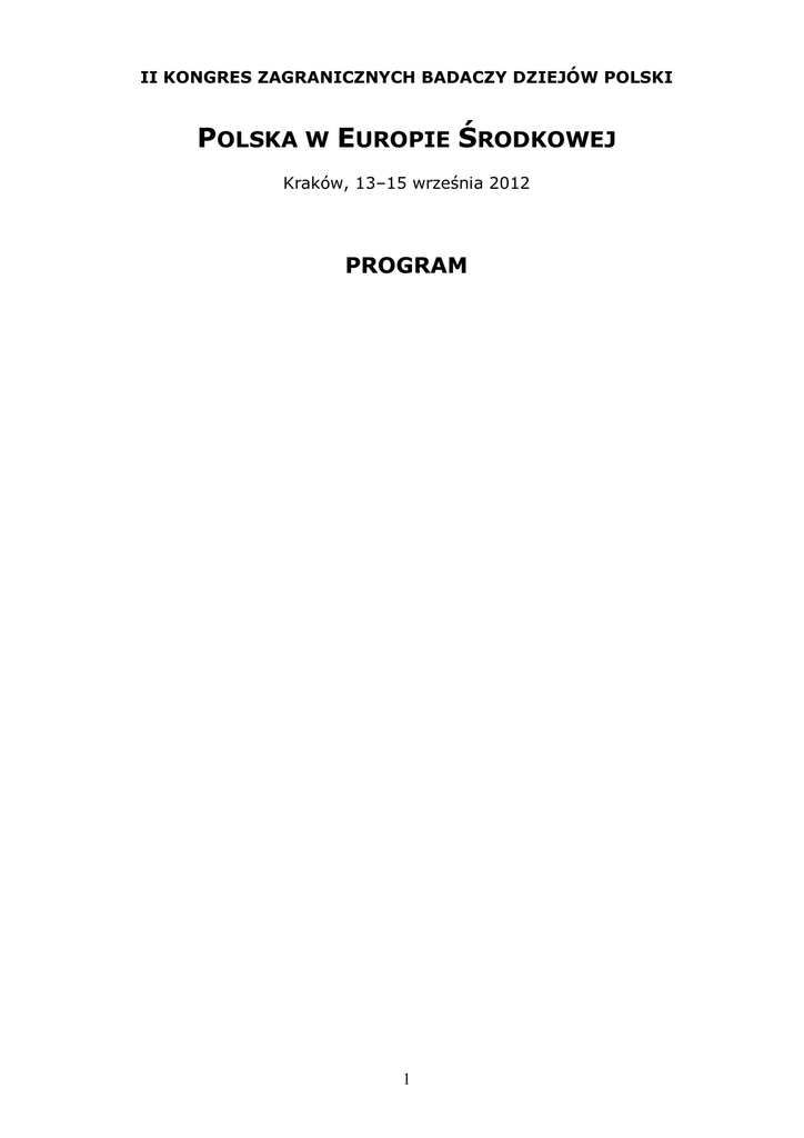 II KONGRES ZAGRANICZNYCH BADACZY DZIEJÓW POLSKI POLSKA W EUROPIE ŚRODKOWEJ Kraków, 13–15 września 2012 PROGRAM 1 12 września 2012 godz. 15:00-18:00 Panel dyskusyjny Społeczność żydowska w Polsce po Holokauście Miejsce obrad: Auditorium Maximum Uniwersytetu Jagiellońskiego Sala: Średnia A Moderatorka: Edyta Gawron Sesja poświęcona historii Żydów polskich po Holokauście obejmie pierwsze dziesięciolecia po zakończeniu II wojny światowej. Za datę zamykającą okres bezpośrednich następstw Zagłady i prób odbudowy oraz utrzymania różnych form życia żydowskiego w powojennej Polsce przyjęto rok 1969, czyli czas emigracji „po-marcowej”. Celem sesji jest podsumowanie badań w tym zakresie, prowadzonych zarówno w Polsce jak i za granicą, oraz ich konfrontacja z szerszym tłem powojennej historii Żydów w krajach Europy ŚrodkowoWschodniej. Punktem wyjścia do dyskusji będzie prezentacja efektów projektu „Następstwa Zagłady Żydów. Polska 1944-2010” i indywidualne badania, a także doświadczenia uczestników sesji. Zwieńczeniem dyskusji będą refleksje historyka i zarazem świadka oraz uczestnika wydarzeń omawianego okresu. Uczestnicy: Prezentacja wyników projektu „Następstwa Zagłady Żydów. Polska 1944-2010” (publikacja Wydawnictwa UMCS w Lublinie, 2010) Anna Cichopek-Gajraj (Phoenix) Jan T. Gross (Nowy Jork) Anat Plotzker (Haifa) Shimon Redlich (Beer Szewa) Jean-Charles Szurek (Nanterre) Klub: Średniowiecze Panteon świętych patronów: Polska i jej sąsiedzi w średniowieczu Miejsce obrad: Auditorium Maximum Uniwersytetu Jagiellońskiego Sala: Mała A Moderatorzy: Zdzisław Noga, Krzysztof Ożóg Sesja będzie poświęcona czterem świętym patronom Polski: Wojciechowi, Wacławowi, Stanisławowi i Jadwidze Śląskiej, których otaczano kultem w Europie Środkowej. Zostaną zaprezentowane referaty badaczy z Budapesztu, 2 Marburga i Pragi na temat genezy i rozwoju kultu wspomnianych świętych, form jego popularyzacji oraz różnorodnych treści religijnych, ideowych, politycznych i symbolicznych z nim związanych. Dyskusja towarzysząca referatom, do której zostaną zaproszeni także mediewiści krakowscy, będzie dotyczyć rozmaitych aspektów kultu świętych patronów, a przede wszystkim jego roli integrującej społeczeństwa środkowoeuropejskie oraz kulturotwórczej w dziedzinie historiografii, hagiografii, kaznodziejstwa, literatury, sztuki i liturgii. Umożliwi ona interdyscyplinarne spojrzenie na kult świętych patronów Polski w kraju i poza jego granicami oraz będzie znakomitą okazją do wymiany doświadczeń badawczych w gronie historyków środkowoeuropejskich. Uczestnicy: Stanislava Kuzmová (Budapeszt), Średniowieczny kult św. Stanisława w Polsce i Europie Środkowej Petr Kubín (Praga), Středověký a v sousedních zemích Jan Kalivoda (Praga), a v sousedních zemích kult Středověký sv. kult sv. Vojtěcha v Polsku, Václava v Čechách, Čechách Polsku Winfried Irgang (Marburg), Sancta Adwigis … mulier fortis … e stripe generosa – Aspekte der Hedwigsverehrung im Mittelalter Do dyskusji nad referatami zostaną zaproszeni następujący mediewiści ze środowiska krakowskiego: Waldemar Bukowski, Wojciech Drelicharz, Lidia Korczak, Marek D. Kowalski, Andrzej Marzec, Wojciech Mischke, Zenon Piech, Krzysztof Polek, Piotr Rabiej, Jerzy Rajman, Stanisław A. Sroka, Krzysztof Stopka, Marcin Starzyński, Wiktor Szymborski, Marek Walczak, Anna Waśko, Dagmara Wójcik-Zega, Anna Zajchowska, Maciej Zdanek. Klub: Nowożytność Wielokulturowość Rzeczypospolitej XVI-XVIII w. – państwo i ludzie Miejsce obrad: Auditorium Maximum Uniwersytetu Jagiellońskiego Sala: Mała B Moderatorzy: Jakub Basista, Bożena Popiołek, Jarosław Stolicki W ramach panelu nowożytnego zostanie podjęta dyskusja nad kwestią wielokulturowości Rzeczypospolitej, przy czym przyjęte rozumienie kultury będzie obejmowało zarówno tradycje, obyczaje, twórczość artystyczną, wzorce osobowe, jak i kulturowy wymiar życia politycznego (tradycje sejmikowe, kształtowanie się demokracji, tolerancję wyznaniową). Szczególna uwaga zostanie poświęcona ocenie tych elementów kultury, które złożyły się na dorobek cywilizacyjny Rzeczypospolitej tego okresu, zbudowany w oparciu o wartości takie jak demokracja, tolerancja czy synkretyzm kulturowy, lecz 3 mający także swą ciemną stronę (ksenofobia, izolacja kulturowa, negatywne wzorce ustrojowe). W ramach tego problemu zostaną przedyskutowane następujące zagadnienia: • Kultura polityczna i prawna Rzeczypospolitej XVI-XVIII w. – wzór czy antywzór ustrojowy? • Tradycje sejmikowe dawnej Rzeczypospolitej – ideał demokracji czy bezdroża państwowości? • Wielość narodów i wyznań – tolerancja czy przymus? • Kultura polska, kultura szlachecka – izolacja czy synkretyzm kulturowy? • Wzorce i modele osobowe – u podstaw wspólnej mentalności. • Inny, obcy, wróg - postrzeganie obcości i swojskości w wielokulturowym państwie. Uczestnicy: Jurate Kiaupiene (Wilno) Vitaliy Mykhaylovskiy (Kijów) Andrej Radaman (Mińsk) Hans-Jürgen Bömelburg (Gießen) Cristian Bobicescu (Bukareszt) Klub: Wiek XIX Oblicza dziewiętnastowiecznej modernizacji: Polska i jej sąsiedzi. Studium przypadków Miejsce obrad: Auditorium Maximum Uniwersytetu Jagiellońskiego Sala: Seminaryjna Moderatorzy: Tomasz Gąsowski, Kazimierz Karolczak Dziewiętnaste stulecie wzbudziło w części elit krajów Europy ŚrodkowoWschodniej poczucie narastającego zapóźnienia cywilizacyjnego. Uprzemysłowiony i zurbanizowany zachód kontynentu zdawał się coraz bardziej oddalać od rolniczego i wiejskiego wschodu. Sytuacja ta mogła prowadzić do trwałej degradacji tego obszaru do pozycji słabego rynku zbytu, źródła taniej siły roboczej oraz zasobów mobilizacyjnych na wypadek wojny dla silniejszych sąsiadów. Zaczęły się pojawiać pomysły zmierzające do przełamania tej sytuacji, a wraz 