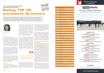 reklama Firmy z branży inżynieryjnej oczami potencjalnych pracowników Pozycja Pracodawca 1 Skanska Grupa 2 Budimex 3 KGHM Polska Miedź 4 PGE (Polska Grupa Energetyczna) 5 Volkswagen Poznań 6 Polimex-Mostostal 7 Strabag 8 Rolls-Royce 9 Bosch 10 PGNiG 11 Toyota Motor Poland 12 Google Poland 13 Urząd Dozoru Technicznego 14 ArcelorMittal 15 Samsung Electronics Polska 16 Volvo Group 17 Nestlé Polska 18 Warbud 19 Microsoft 20 ABB Mimo delikatnego spowolnienia nadzieja na nowe unijne fundusze strukturalne wpływa pozytywnie na całą branżę. Tomasz Krzywicki podkreśla także, że firmy z tego obszaru (Skanska, Budimex czy Strabag) są bardzo aktywne na polu działań wizerunkowych. Współpracują z uczelniami, mają rozbudowane programy praktyk i staży, przez które wypracowały mocną pozycję na rynku atrakcyjnych pracodawców. 21 IKEA 22 General Motors Poland 23 PKN Orlen 24 Polskie Linie Lotnicze LOT 25 Siemens Grupa 26 GE International (General Electric) 27 Coca-Cola (HBC Polska, Poland Services) 28 Tauron Restrukturyzacja wizerunku i nowe media 29 Danone 30 Mars Polska 31 Sony Polska 32 L'Oréal Polska 33 Procter & Gamble 34 Kompania Piwowarska 35 Grupa Żywiec 36 IBM Polska 37 Grupa Lotos 38 TVN SA 39 Unilever 40 Polpharma 41 Kraft Foods/Mondelez International 42 Nokia Siemens Networks 43 Philips Polska 44 Dell Poland 45 3M Poland 46 Michelin 47 Renault Polska 48 Bayer 49 Fujitsu Technology Solutions 50 DB Schenker Ranking: TOP 100 pracodawców dla inżyniera Kryzys – słowo, które już od kliku lat straszy w prawie każdej branży, niekoniecznie musi być groźne z punktu widzenia marki pracodawcy (employer branding). Najnowsze badanie Universum Student Survey 2013, przeprowadzone na grupie 25 550 studentów pokazuje ważne i nowe trendy w oczekiwaniach młodych wobec pracodawców. Dane, szczególnie te płynące od studentów z kierunków inżynieryjnych, to wskazówka jak – mimo niepewnej sytuacji na rynku – zapewnić firmie stały napływ najbardziej utalentowanych pracowników. Mariusz Krysiak redaktor naczelny Polski Przemysł Od praktyki do etatu Aż 91% studentów inżynierii (dane z Universum Student Survey 2013) jest zainteresowanych praktykami i stażami w trakcie studiów. Mając dobry program praktyk, firma może zatem efektywnie i skutecznie prowadzić działania wizerunkowe w tej grupie. Dodajmy tylko, że młodzi ludzie mają inny sposób myślenia, są otwarci na zmiany, a przecież umiejętność nadążania za zmieniającym się rynkiem jest w nowoczesnej firmie najważniejsza. Po zakończeniu praktyk wśród studentów inżynierii, podobnie jak w pozostałych grupach, widoczne jest wyraźne oczekiwanie na uzyskanie stabilnego zatrudnienia. To na pewno wina wspomnianego wcześniej kryzysu. Jego świadomość jest coraz bardziej obecna w głowach kandydatów, również tych dopiero rozpoczynających swoją karierę zawodową. Z drugiej strony zawirowania gospodarcze w tym roku, właściwie po raz pierwszy odkąd prowadzone jest badanie (czyli od roku 2008), sprawiły, że studenci trochę „zeszli na ziemię” i obniżyli, choć nieznacznie, swoje oczekiwania finansowe – nastąpił spadek do poziomu 3114 zł „na rękę” z 3201 zł w 2012 r. W Polsce, ale międzynarodowo Tylko 19% studentów planuje wyjechać za granicę po studiach. Pozostali chcieliby pracować w Polsce. 50% z nich marzy o pracy w firmach międzynarodowych. 4 | Polski Przemysł – maj 2013 I choć spadek w tegorocznym rankingu zanotowały największe światowe koncerny z branży motoryzacyjnej (ich kryzys dotknął najbardziej – to wynik malejącej sprzedaży samochodów, zmniejszenia skali produkcji, a w ślad za tym również zatrudnienia w tej branży): Volkswagen – 5. pozycja (spadek o 3 miejsca), Toyota – 11. (spadek o 4 miejsca), Volvo – 16. pozycja (spadek o 2 miejsca), General Motors – 22. (spadek o 2 miejsca), Renault Polska – 47. (spadek o 3 miejsca), to wciąż pozostają one wysoko w zestawieniu atrakcyjnych pracodawców. Za to praca w branży energetycznej zyskuje w rankingach młodych inżynierów (miejsca w pierwszej dziesiątce zajmują PGE i PGNiG). Według Tomasza Krzywickiego z Universum Polska „rosnąca atrakcyjność firm z tego sektora może wynikać z szerokiej obecności tych podmiotów w ciągle żywej w mediach debacie na temat bezpieczeństwa energetycznego. Dodatkowo ten sektor ma opinię mocnego finansowo, przez co gwarantującego stabilność zatrudnienia, a to jeden z głównych atrybutów atrakcyjności pracodawcy wskazywany przez respondentów. Nie bez znaczenia jest rów- Tylko 19% studentów planuje wyjechać za granicę po studiach nież kwestia debaty na temat gazu łupkowego w Polsce. Rozpoczęcie eksploatacji tego paliwa na większą skalę z pewnością wpłynęłoby bardzo pozytywnie na rozwój tej branży, a co za tym idzie wiele nowych stanowisk pracy”. Tym można wytłumaczyć awans KGHM w rankingach. Branża budowlana też jest ciągle postrzegana jako mocna i perspektywiczna (pierwsze miejsce zajmuje Skanska). Wyjątkiem jest Polimex-Mostostal – firma, która obecnie ma bardzo duże problemy finansowe i przechodzi głęboką restrukturyzację. Najwyraźniej to jeszcze do studentów nie dotarło, bo firma utrzymała swoją pozycję. Wizerunku nie da się zbudować w jeden dzień, ale można w jeden dzień go stracić. Dlatego w czasach kryzysu dobrze zaplanowane działania z dziedziny employer branding mogą pomóc we wzmocnieniu całej firmy. Długofalowa strategia komunikacyjna w tym obszarze powinna być prowadzona ciągle, bez względu na koniunkturę gospodarczą. Zmieniać się mogą jedynie treści komunikatów. I koniecznie wszystkie działania powinny być adresowane zarówno do pracowników, jak i do ludzi spoza firmy. Tomasz Krzywicki podkreśla, że „okres kryzysu to czas trudnej restrukturyzacji zatrudnienia. Dlatego komunikaty wewnętrzne powinny mocno integrować zespół. A te kierowane na zewn