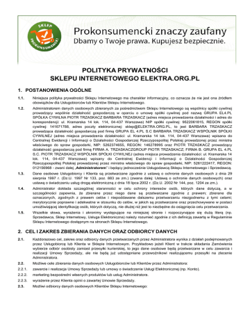 POLITYKA PRYWATNOŚCI SKLEPU INTERNETOWEGO ELEKTRA