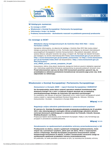 NewsletterECK072009 - Europejskie Centrum Konsumenckie