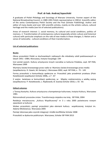 of the series Contemporary Polish Society and the Past (Scholar Publishing). Author and