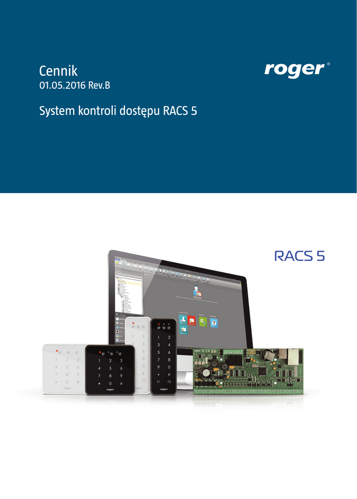 Cennik obowiązuje od 01.05.2016 do momentu wydania nowego cennika Cennik 01.05.2016 Rev.B System kontroli dostępu RACS 5 Cennik Cennik obowiązuje od 01.05.2016 do momentu wydania nowego cennika Ogólne warunki cennika: • • • • • • • Ceny wyrażone są w polskich złotych na warunkach EXW Gościszewo (INCOTERMS 2000) Wszystkie podane ceny są cenami detalicznymi (sugerowanymi) i nie zawierają podatku VAT Transport firmą spedycyjną DHL Przy dostawach towaru o wartości powyżej 3000zł netto, koszt transportu pokrywa ROGER Sp.J. Niniejszy cennik nie stanowi oferty w rozumieniu prawa i jest publikowany jedynie dla celów informacyjnych Niniejszy cennik anuluje jego poprzednie wersje Ceny, specyfikacje oraz dostępność urządzeń mogą ulec zmianie bez uprzedniego powiadomienia Produkty i usługi dostarczane są wyłącznie w oparciu o Ogólne Warunki Handlowe (OWH) firmy ROGER Sp.J. Dokument ten można pobrać ze strony www.roger.pl SYSTEM KONTROLI DOSTĘPU RACS 5 SPRZĘT KONTROLERY DOSTĘPU Indeks Zdjęcie Opis Cena MC16-RAW Płyta MC16 bez oprogramowania. Po wgraniu odpowiedniego oprogramowania oraz licencji może być wykorzystana jako dowolne urządzenie bazujące na module MC16. 320,0 MC16-1 1 przejście, 8000 identyfikatorów, Ethernet, 8 wejść, 8 wyjść tranzystorowych, 2 wyjścia przekaźnikowe. 540,0 MC16-2 2 przejścia, 8000 identyfikatorów, Ethernet, 8 wejść, 8 wyjść tranzystorowych, 2 wyjścia przekaźnikowe. 710,0 MC16-4 4 przejścia, 8000 identyfikatorów, Ethernet, 8 wejść, 8 wyjść tranzystorowych, 2 wyjścia przekaźnikowe. 970,0 MC16-8 8 przejść, 8000 identyfikatorów, Ethernet, 8 wejść, 8 wyjść tranzystorowych, 2 wyjścia przekaźnikowe. 1370,0 MC16-16 16 przejść, 8000 identyfikatorów, Ethernet, 8 wejść, 8 wyjść tranzystorowych, 2 wyjścia przekaźnikowe. 2170,0 Upgrade płyty głównej kontrolera MC16 do wyższej wersji (ilość obsługiwanych przejść) kalkulowany jako różnica pomiędzy ceną wersji docelowej kontrolera a ceną wersji posiadanej, zgodnie z cennikiem obowiązującym w dniu zamówienia Upgrade-u. ' Opis Cena MC16-EVC-8 Kontroler dostępu dla wind klasycznych (z przyciskami wyboru piętra) z obsługą 8 pięter, dwa punkty logowania, 8000 identyfikatorów, Ethernet, 8 wejść, 8 wyjść tranzystorowych, 2 wyjścia przekaźnikowe. 1560,0 MC16-EVC-16 Kontroler dostępu dla wind klasycznych (z przyciskami wyboru piętra) z obsługą 16 pięter, dwa punkty logowania, 8000 identyfikatorów, Ethernet, 8 wejść, 8 wyjść tranzystorowych, 2 wyjścia przekaźnikowe. 2360,0 MC16-EVC-32 Kontroler dostępu dla wind klasycznych (z przyciskami wyboru piętra) z obsługą 32 pięter, dwa punkty logowania, 8000 identyfikatorów, Ethernet, 8 wejść, 8 wyjść tranzystorowych, 2 wyjścia przekaźnikowe. 3560,0 MC16-EVC-64 Kontroler dostępu dla wind klasycznych (z przyciskami wyboru piętra) z obsługą 64 pięter, dwa punkty logowania, 8000 identyfikatorów, Ethernet, 8 wejść, 8 wyjść tranzystorowych, 2 wyjścia przekaźnikowe. 5560,0 MC16-UPG n/d KONTROLERY DOSTĘPU DLA WIND Indeks Zdjęcie KONTROLERY AUTOMATYKI BUDYNKOWEJ Indeks strona 2 z 8 Zdjęcie Opis Cena MC16-BAC-8 Kontroler automatyki budynkowej 8 węzłów automatyki, Ethernet, 8 wejść, 6 wyjść tranzystorowych, 2 wyjścia przekaźnikowe. 710,0 MC16-BAC-16 Kontroler automatyki budynkowej 16 węzłów automatyki, Ethernet, 8 wejść, 6 wyjść tranzystorowych, 2 wyjścia przekaźnikowe. 970,0 MC16-BAC-32 Kontroler automatyki budynkowej 32 węzły automatyki, Ethernet, 8 wejść, 6 wyjść tranzystorowych, 2 wyjścia przekaźnikowe. 1370,0 MC16-BAC-64 Kontroler automatyki budynkowej 64 węzły automatyki, Ethernet, 8 wejść, 6 wyjść tranzystorowych, 2 wyjścia przekaźnikowe. 2170,0 www.roger.pl Cennik Cennik obowiązuje od 01.05.2016 do momentu wydania nowego cennika EKSPANDERY Indeks Zdjęcie Opis Cena MCX402DR-BRD Ekspander we/wy, 8 wejść, 2 wyjścia tranzystorowe, 2 wyjścia przekaźnikowe, obsługa dwóch czytników serii PRT (interfejs RACS CLK/DTA) lub Wiegand 24..66 bit. 320,0 MCX102DR-BRD Ekspander we/wy, 2 wejścia, 1 wyjście tranzystorowe, 1 wyjście przekaźnikowe, obsługa jednego czytnika serii PRT (interfejs RACS CLK/DTA) lub Wiegand 24..66 bit. 145,0 MCX8-BRD Ekspander we/wy, 8 wejść, 8 wyjść przekaźnikowych. 280,0 MCX2-BRD Ekspander we/wy, 2 wejścia, 2 wyjścia przekaźnikowe. 135,0 Opis Cena MCT82M Czytnik MIFARE 13.56 MHz Classic/Ultralight, wewnętrzny z klawiaturą dotykową, czarny panel, obudowa ciemnoszara. 305,0 MCT82M-W Czytnik MIFARE 13.56 MHz Classic/Ultralight, wewnętrzny z klawiaturą dotykową, biały panel i obudowa, oferowany na zasadach produkcji specjalnej. 305,0 MCT82M-BK Czytnik MIFARE 13.56 MHz Classic/Ultralight, wewnętrzny bez klawiatury, czarny panel, obudowa ciemnoszara. 260,0 MCT82M-BK-W Czytnik MIFARE 13.56 MHz Classic/Ultralight, wewnętrzny bez klawiatury, biały panel i obudowa, oferowany na zasadach produkcji specjalnej. 260,0 MCT82M-IO Czytnik MIFARE 13.56 MHz Classic/Ultralight, wewnętrzny z klawiaturą dotykową, 3 linie wejściowe, 2 wyjścia tranzystorowe, 1 wyjście przekaźnikowe, czarny panel, obudowa ciemnoszara. 355,0 MCT82M-IO-W Czytnik MIFARE 13.56 MHz Classic/Ultralight, wewnętrzny z klawiaturą dotykową, 3 linie wejściowe, 2 wyjścia tranzystorowe, 1 wyjście przekaźnikowe, biały panel i obudowa, oferowany na zasadach produkcji specjalnej. 355,0 MCT82M-IOBK Czytnik MIFARE 13.56 MHz Classic/Ultralight, wewnętrzny bez klawiatury, 3 linie wejściowe, 2 wyjścia tranzystorowe, 1 wyjście przekaźnikowe, czarny panel, obudowa ciemnoszara. 310,0 MCT82M-IOBK-W Czytnik MIFARE 13.56 MHz Classic/Ultralight, wewnętrzny bez klawiatury, 3 linie wejściowe, 2 wyjścia tranzystorowe, 1 wyjście przekaźnikowe, biały panel i obudowa, oferowany na zasadach produkcji specjalnej. 310,0 MCT84M Czytnik MIFARE 13.56 MHz Classic/Ultralight, wewnętrzny z klawiaturą dotykową, dwa klawisze funkcy