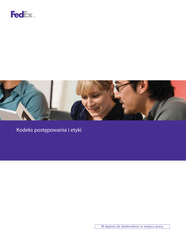 Kodeks postępowania i etyki W dążeniu do doskonałości w miejscu pracy Spis treści List od Przewodniczącego 2 Doskonałość w miejscu pracy a „Kodeks postępowania i etyki” FedEx 3 Postępowanie zgodne z prawem i etyczne 5 Równość szans – nękanie 8 Polityka otwartych drzwi 9 Zdrowie, bezpieczeństwo i środowisko 10 Konflikt interesów 11 Nowe możliwości dla firmy 13 Upominki, rozrywka, pożyczki i inne świadczenia 14 Nienależne świadczenia i łapówki 16 Ochrona i wykorzystanie mienia i informacji Firmy 18 Obrót papierami wartościowymi w oparciu o informacje wewnętrzne 20 Działalność polityczna i finansowanie polityki 21 Amerykańskie uregulowania antymonopolowe i konkurencji 22 Korzystanie z komputerów i zasobów elektronicznych 23 Sprawozdawczość i kontrola wewnętrzna – przechowywanie dokumentacji 25 Sprawozdawczość przedsiębiorstwa i publiczne ujawnianie informacji firmy 26 Zgłoszenia w sprawach rachunkowo-rewizyjnych 27 Zgłaszanie nadużyć – telefon alarmowy FedEx 28 Odstępstwa 30 Egzekwowanie przestrzegania Kodeksu 30 Podsumowanie 31 Kodeks postępowania i etyki 1 List od Przewodniczącego Marka „FedEx” kojarzona jest na całym świecie z rzetelnością i niezawodnością. Nasza reputacja to ważny atut strategiczny i to od nas zależy chronienie i umacnianie jej. Na współczesnym rynku reputacja jest bezcenna. Od dawna dążymy do przestrzegania uregulowań prawnych w miejscach naszego działania i do utrzymania wysokiego standardu etyki biznesowej i osobistej. Przestrzegania polityk opisanych w niniejszym Kodeksie oczekuje się od każdego członka kierownictwa i pracownika FedEx, a także od kontrahentów firmy i uczestników globalnego serwisu świadczących usługi w imieniu FedEx lub działających pod marką „FedEx”. Należy zapoznać się z Kodeksem i wypracować na tej podstawie roboczą wiedzę o uregulowaniach wpływających bezpośrednio na pracę firmy. Niniejszy Kodeks nie przewiduje wszystkich możliwych sytuacji decyzyjnych. Ważnymi komponentami ogólnego programu przestrzegania uregulować i etycznego postępowania są pozostałe polityki, instrukcje i podręczniki FedEx – należy je interpretować w związku z niniejszym Kodeksem. Nade wszystko, pracownicy powinni bez wahania zwracać się do swych przełożonych, osób kontaktowych i działów prawnych o wyjaśnienia lub rady przed podjęciem decyzji w sytuacji niepewności. W razie podejrzenia naruszenia prawa lub zasad etyki, obowiązkiem pracownika jest przekazanie tej informacji swemu przełożonemu, osobie kontaktowej, działowi prawnemu lub kadrowemu lub operatorom telefonu alarmowego FedEx. Polityka firmy zabrania jakiegokolwiek odwetu za wypełnienie tego obowiązku. Członkowie kierownictwa odpowiadają dodatkowo za upowszechnianie zasad określonych w niniejszym Kodeksie i za pielęgnowanie kultury, w której etyczne postępowanie jest uznawane, cenione i praktykowane przez wszystkich członków zespołu. Osiągnięcie pożądanego stanu zależy od zdolności kierownictwa do nadawania właściwego tonu i reagowania na podejrzewane naruszenia bezzwłocznie, z dbałością i poszanowaniem. Dążenie firmy do utrzymania najwyższych standardów etycznych i profesjonalnych jest integralną częścią jej deklaracji „Purple Promise”: zobowiązania do nadania każdemu kontaktowi z firmą FedEx cech wyjątkowości. Dziękuję za przeczytanie, przemyślenie i przestrzeganie niniejszego Kodeksu, a także za Państwa nieustające poświęcenie i ciężką pracę. Szczerze oddany, Frederick W. Smith Przewodniczący, Prezes i Dyrektor Generalny Powrót do Spisu treści Kodeks postępowania i etyki 2 Doskonałość w miejscu pracy a „Kodeks postępowania i etyki” FedEx Kodeks jest źródłem wskazówek promujących etyczne postępowanie i wspierających zasłużoną międzynarodową reputację firmy FedEx. Firma uznawana jest od lat za jednego z najlepszych pracodawców w USA i w skali międzynarodowej. Choć Kodeks zawiera wskazówki dotyczące różnych sytuacji związanych z pracą, wysokie standardy charakteryzujące kulturę firmy objawiają się przestrzeganiem kilku prostych zasad: Poszanowanie KLIENTÓW Słuchanie klientów i dążenie do doskonałości w miejscu pracy, by spełniać ich potrzeby i przewyższać oczekiwania. Powrót do Spisu treści Poszanowanie WSPÓŁPRACOWNIKÓW Poszanowanie Poszanowanie FIRMY SPOŁECZNOŚCI Kształcenie wysoce umotywowanych i wydajnych członków zespołu, dbałość o bezpieczeństwo, docenienie różnorodności, praca zespołowa i poszanowanie ludzkiej godności. Odpowiedzialność za wpływ indywidualnych działań na reputację firmy i za racjonalne wykorzystywanie zasobów. Wspieranie miejscowych społeczności i działanie z pozycji odpowiedzialnego obywatela świata. Kodeks postępowania i etyki 3 Wielu opisom polityk zawartym w Kodeksie towarzyszą pytania i odpowiedzi. Służą one wyjaśnieniu polityk i umieszczeniu ich w kontekście realnej pracy. P: O: P: O: P: O: P: O: Czy Kodeks dotyczy wszystkich pracowników FedEx? Kodeks obowiązuje wszystkich członków kierownictwa i szeregowych pracowników FedEx Corporation, a także podmioty zależne na całym świecie. Kodeks należy stosować w połączeniu ze wszystkimi politykami, instrukcjami i podręcznikami FedEx dotyczącymi danego stanowiska pracy. Lokalne polityki podmiotu zależnego FedEx mogą odbiegać nieznacznie od postanowień niniejszego Kodeksu. W tej sytuacji należy przestrzegać polityki bardziej wymagającej lub zwrócić się o wskazówki do działu prawnego. Czy Kodeks obowiązuje kontrahentów? Niektóre postanowienia Kodeksu obowiązują kontrahentów i uczestników serwisu globalnego świadczących usługi w imieniu FedEx lub działających pod marką „FedEx” (zwanych dalej „kontrahentami”) w zakresie określonym przez umowy zawarte przez nich z firmą FedEx i dopuszczonym przez obowiązujące uregulowania prawne. Posta