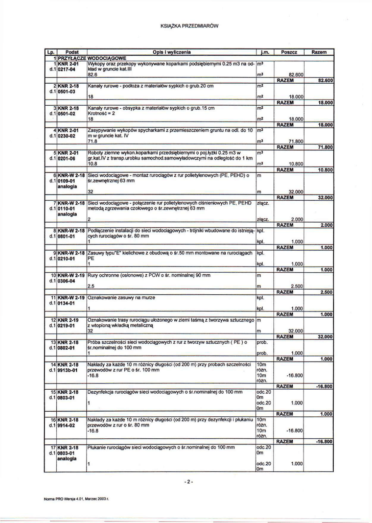 6 KNR-W2-18 Sieci wodociągowe - montaż rurociągów z njr polietylenowych ( P E . P E H D ) o