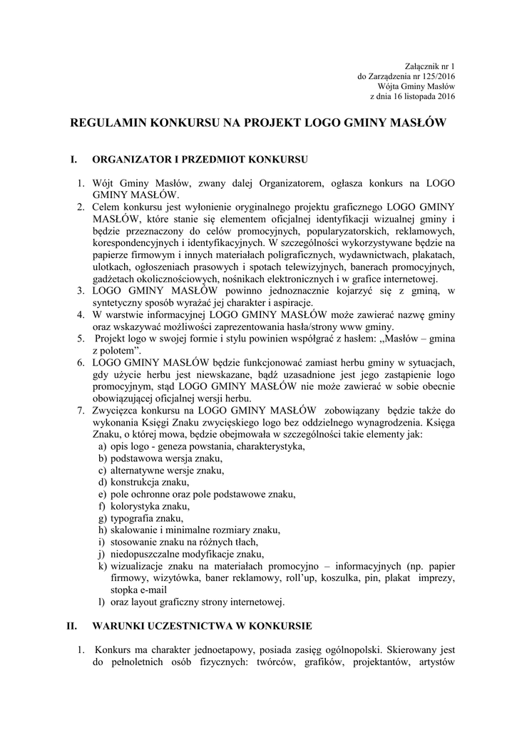 REGULAMIN KONKURSU NA PROJEKT LOGO GMINY MASŁÓW