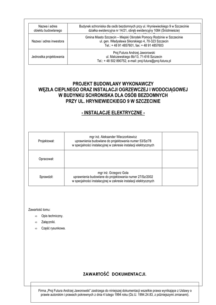 projekt budowlany wykonawczy węzła cieplnego oraz instalacji