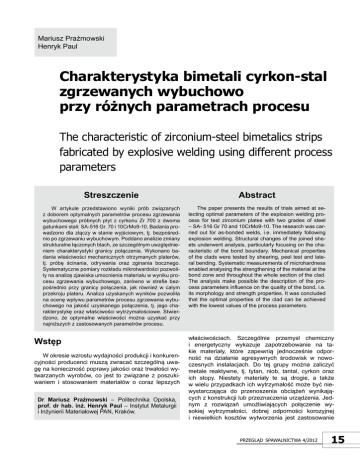 charakterystyka bimetali cyrkon-stal zgrzewanych wybuchowo przy